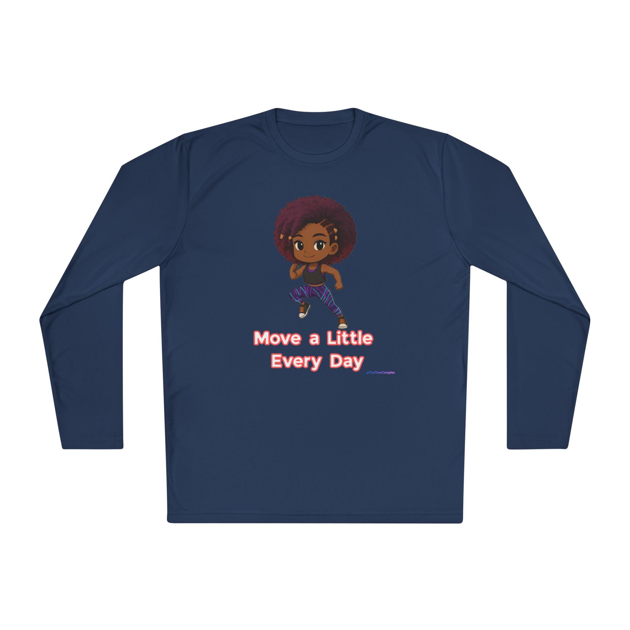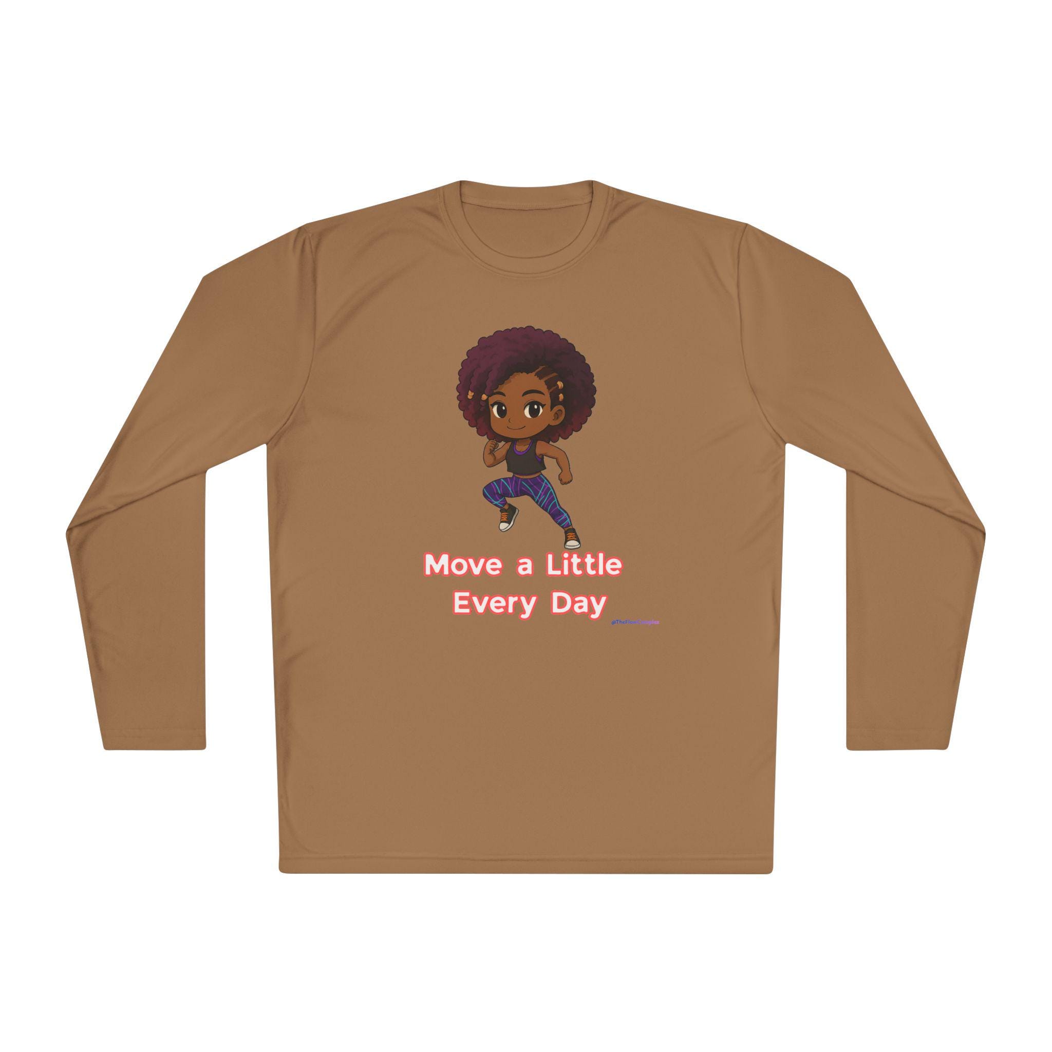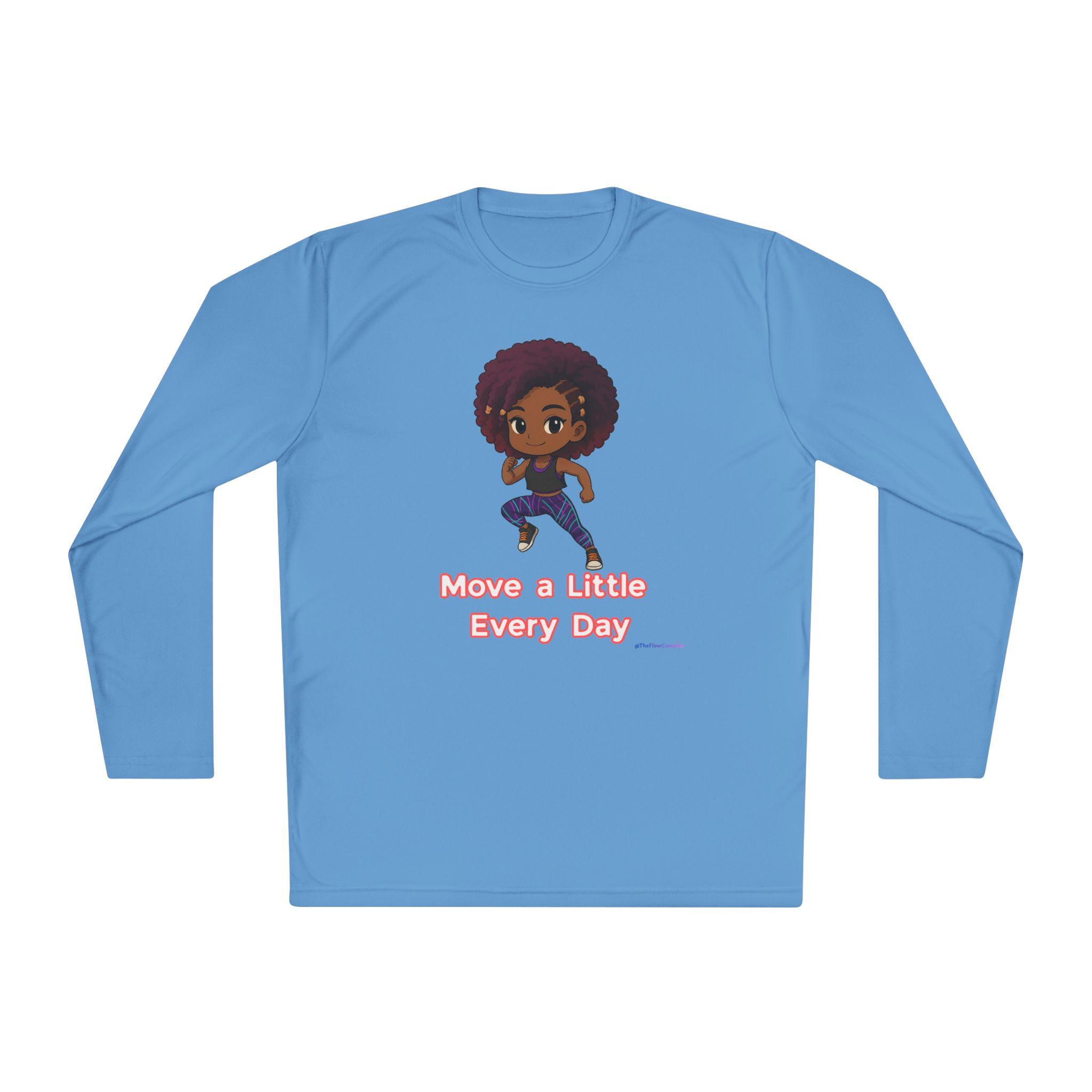 Introducing the perfect addition to your activewear collection! This lightweight long sleeve tee combines comfort and style, making it ideal for daily wear. The unique design inspires a positive mindset with the message "Move a Little Every Day," encouraging an active lifestyle. Perfect for fitness enthusiasts, this tee enhances your workout experience, keeping you cool and comfortable. It’s versatile enough for running errands, outdoor activities, or lounging at home. This long sleeve tee is great for anyone looking to boost motivation, making it an excellent gift for health-conscious friends or family, especially during fitness-related holidays like New Year’s resolutions, summer workouts, or any special occasion focused on wellness and activity.