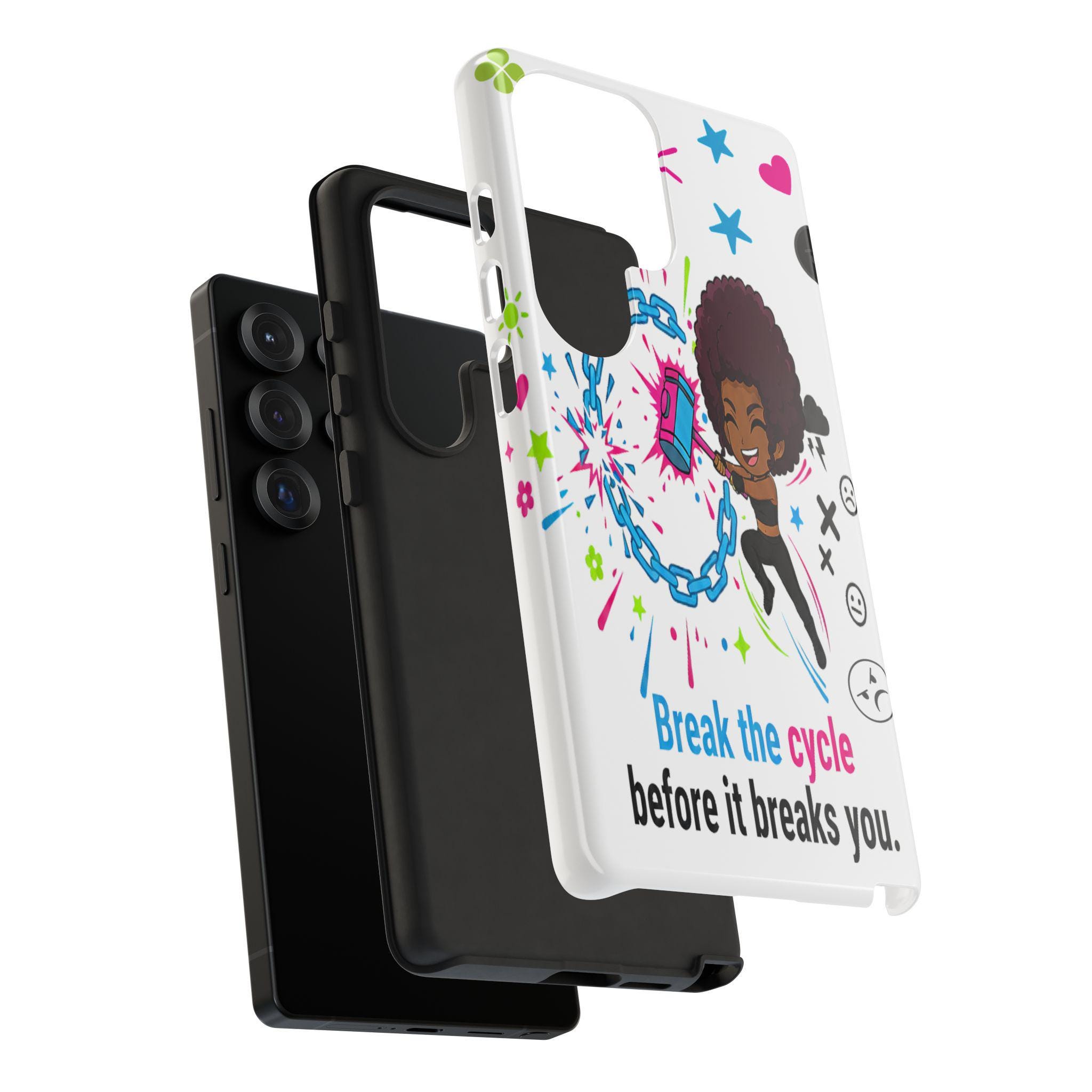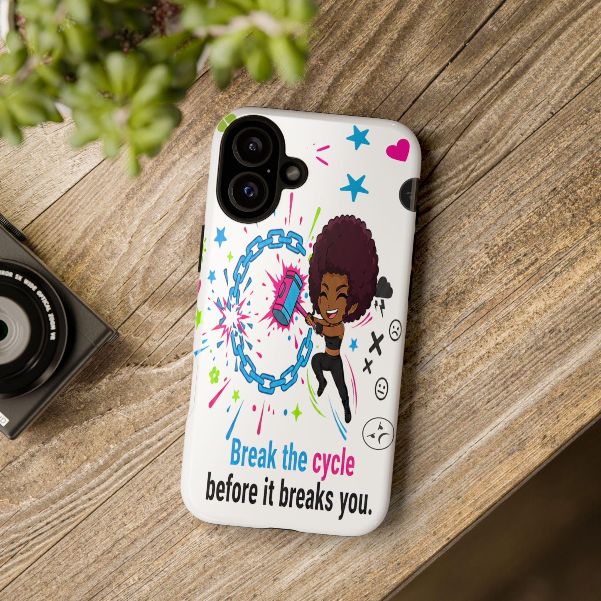Introducing a vibrant and empowering phone case designed for those who dare to stand out! This protective phone case radiates positivity and resilience, making it a perfect accessory for anyone who believes in breaking cycles and overcoming challenges. It's not just a phone case; it's a statement piece for individuals who embrace their unique selves. Ideal for everyday use, this product fits seamlessly into your lifestyle, offering both style and functionality. It's a wonderful gift for friends and loved ones, especially during celebrations like birthdays, graduations, or just to brighten someone's day. It reaffirms personal strength and encourages a confident vibe, making it suitable for anyone looking to express their individuality.