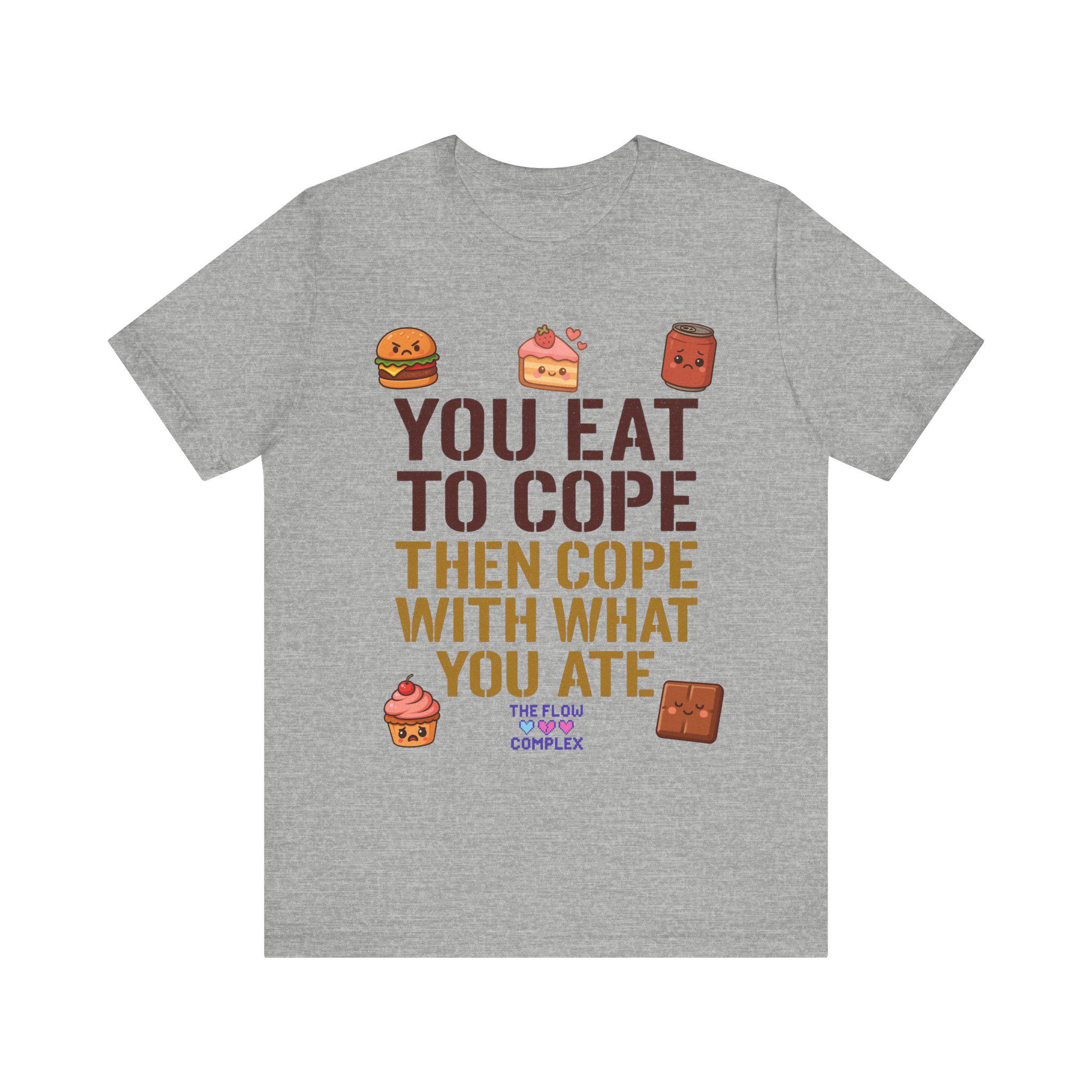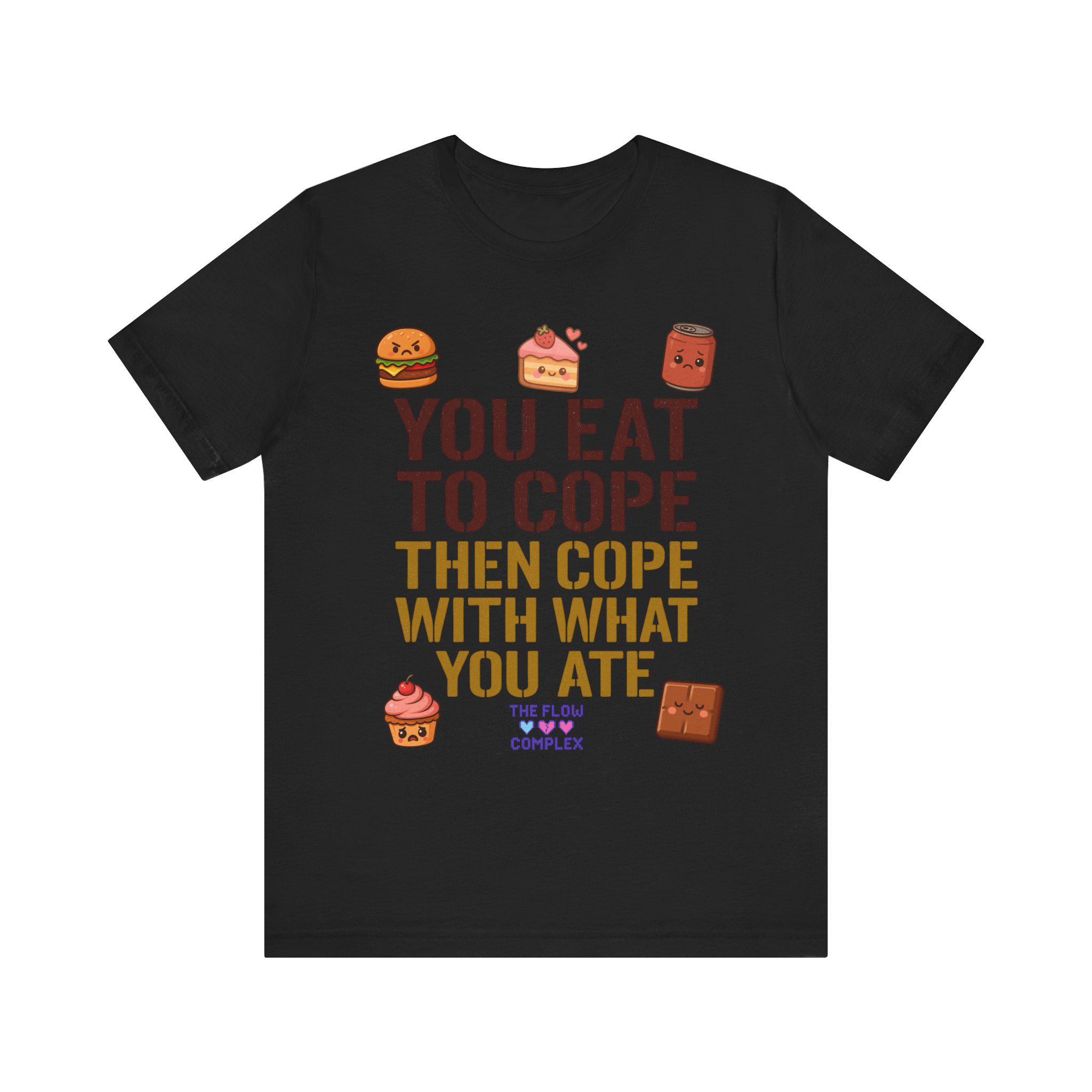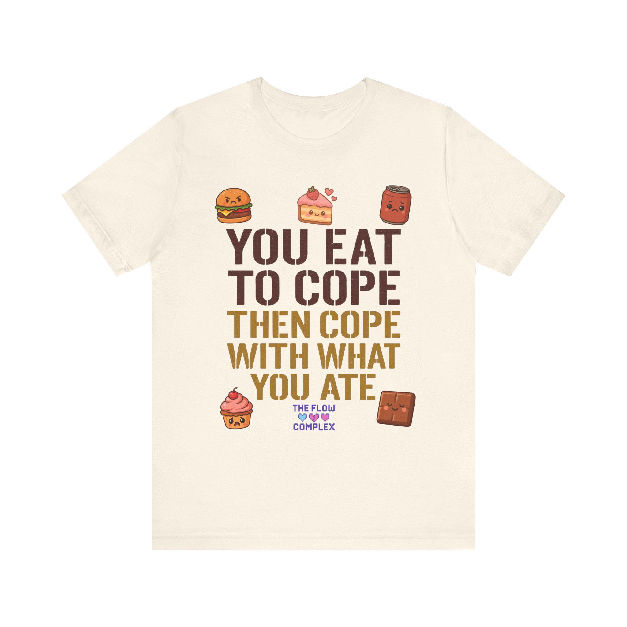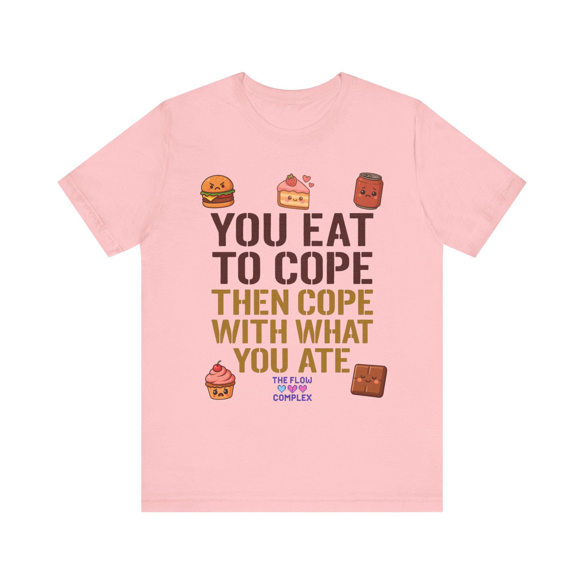 This lightweight jersey tee carries a playful, honest message: food as a little lifeline and the humor that follows. Soft Airlume combed cotton keeps this shirt breathable and comfortable whether you're lounging at home, grabbing a late-night snack, or meeting friends for coffee. The front art mixes bold typography with cute dessert characters — cupcakes, slices, and squares — that make the statement feel warm, relatable, and a little cheeky. It drapes neatly with side seams and a retail crew neckline, so it looks put-together with jeans or layered under a jacket. Wear it when you want to acknowledge the small, messy ways we cope — and to spark a knowing smile from anyone who sees it.