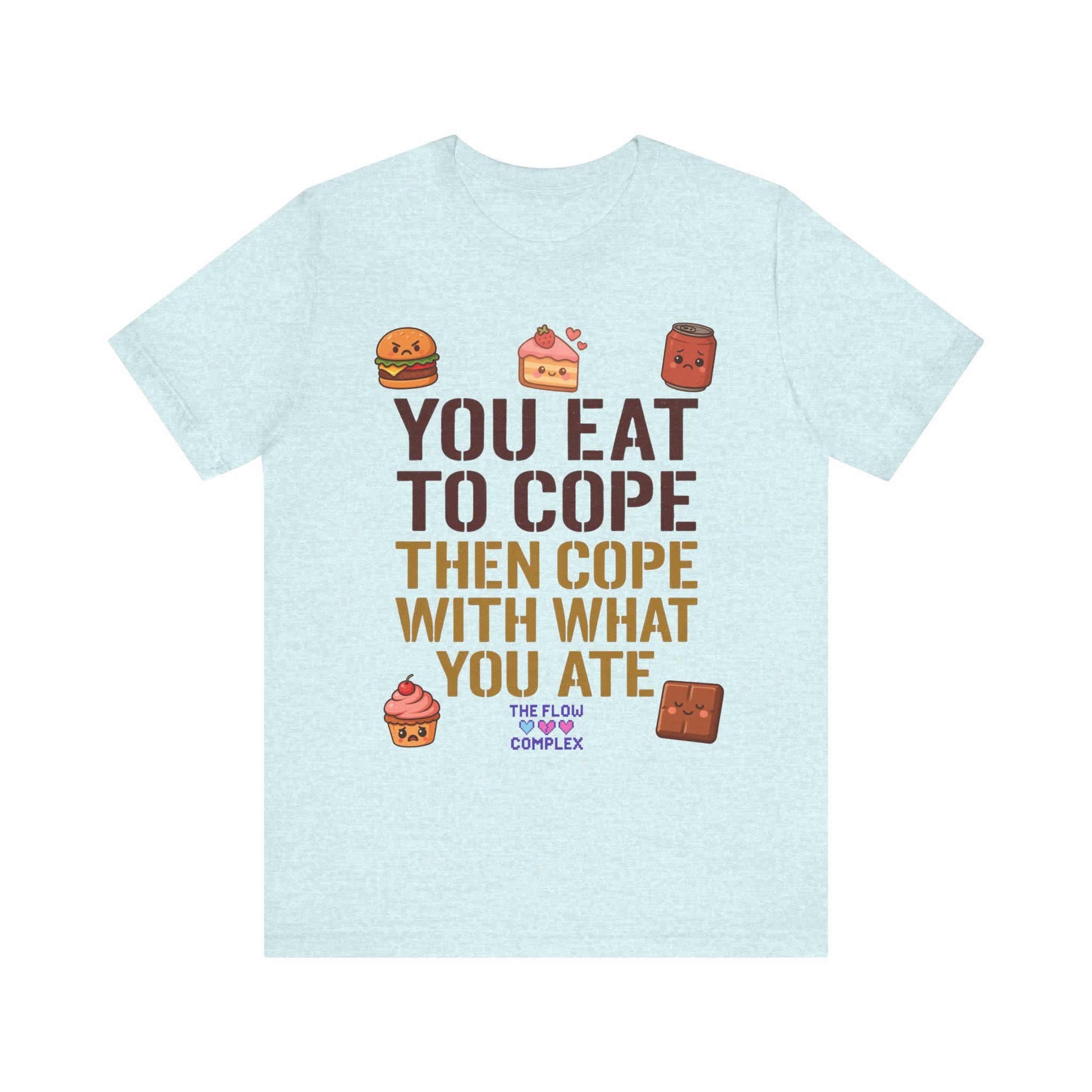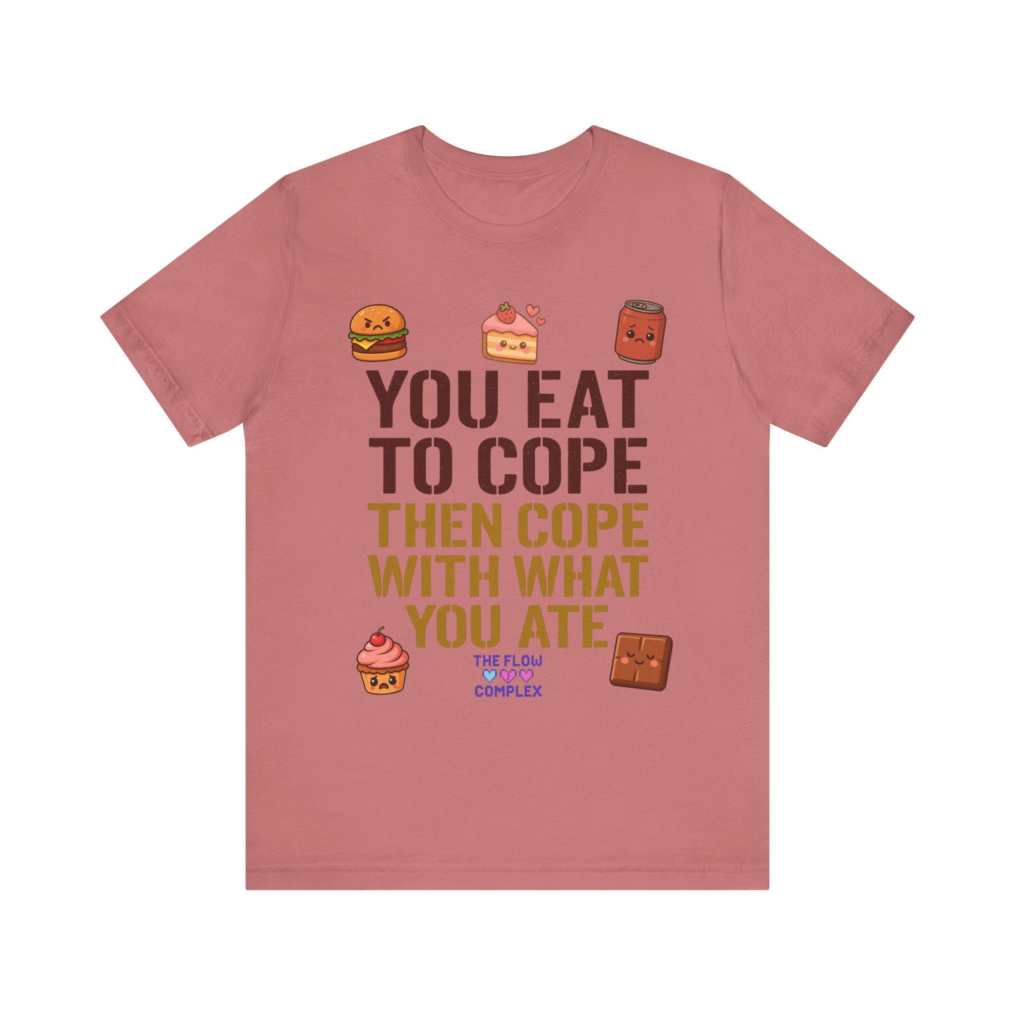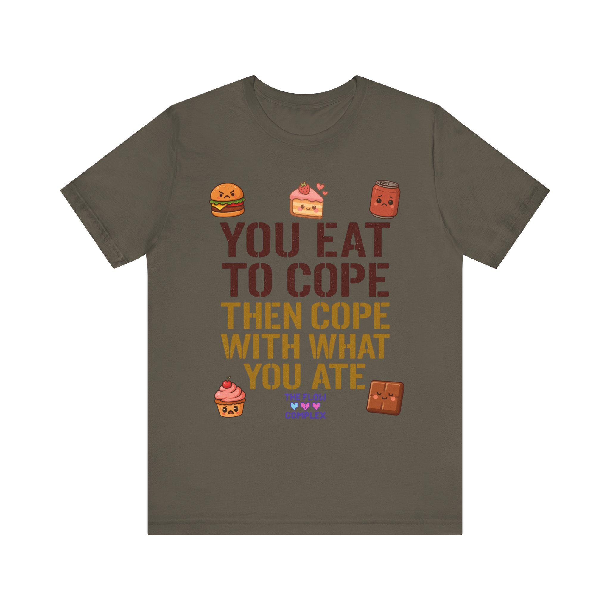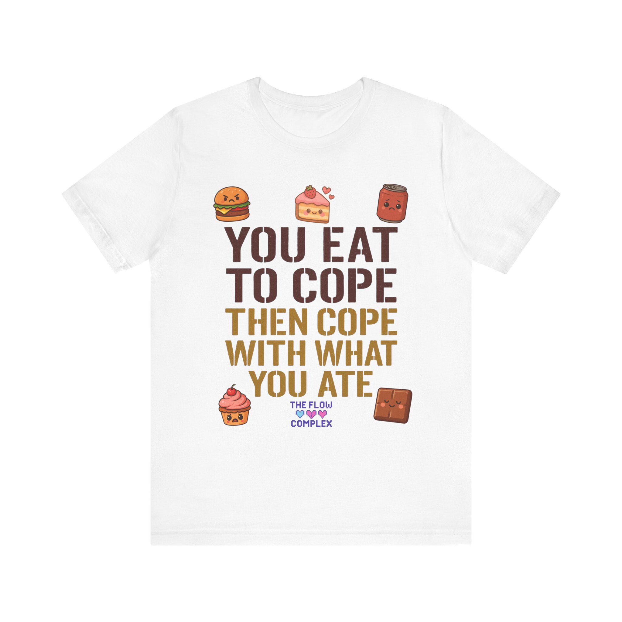 This lightweight jersey tee carries a playful, honest message: food as a little lifeline and the humor that follows. Soft Airlume combed cotton keeps this shirt breathable and comfortable whether you're lounging at home, grabbing a late-night snack, or meeting friends for coffee. The front art mixes bold typography with cute dessert characters — cupcakes, slices, and squares — that make the statement feel warm, relatable, and a little cheeky. It drapes neatly with side seams and a retail crew neckline, so it looks put-together with jeans or layered under a jacket. Wear it when you want to acknowledge the small, messy ways we cope — and to spark a knowing smile from anyone who sees it.