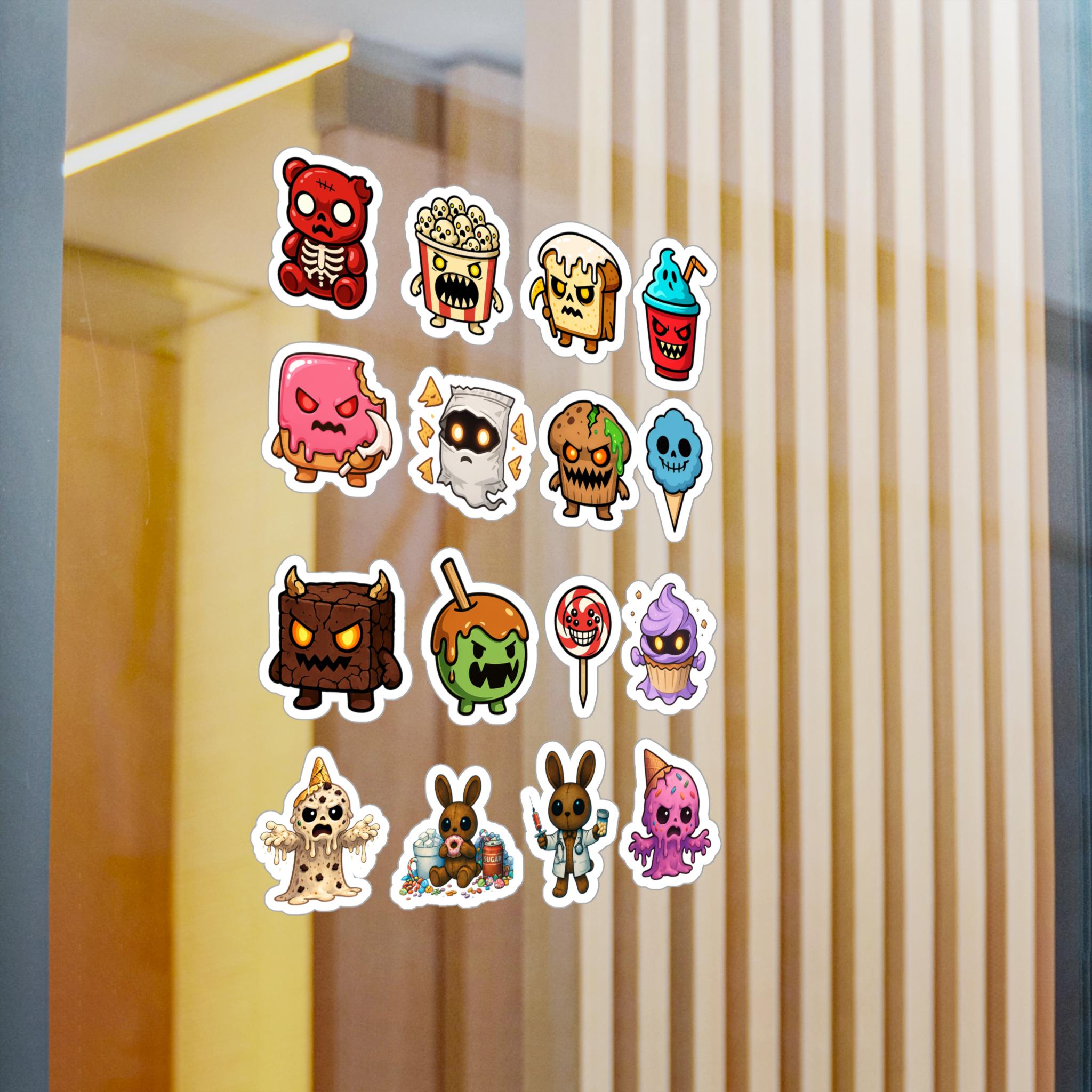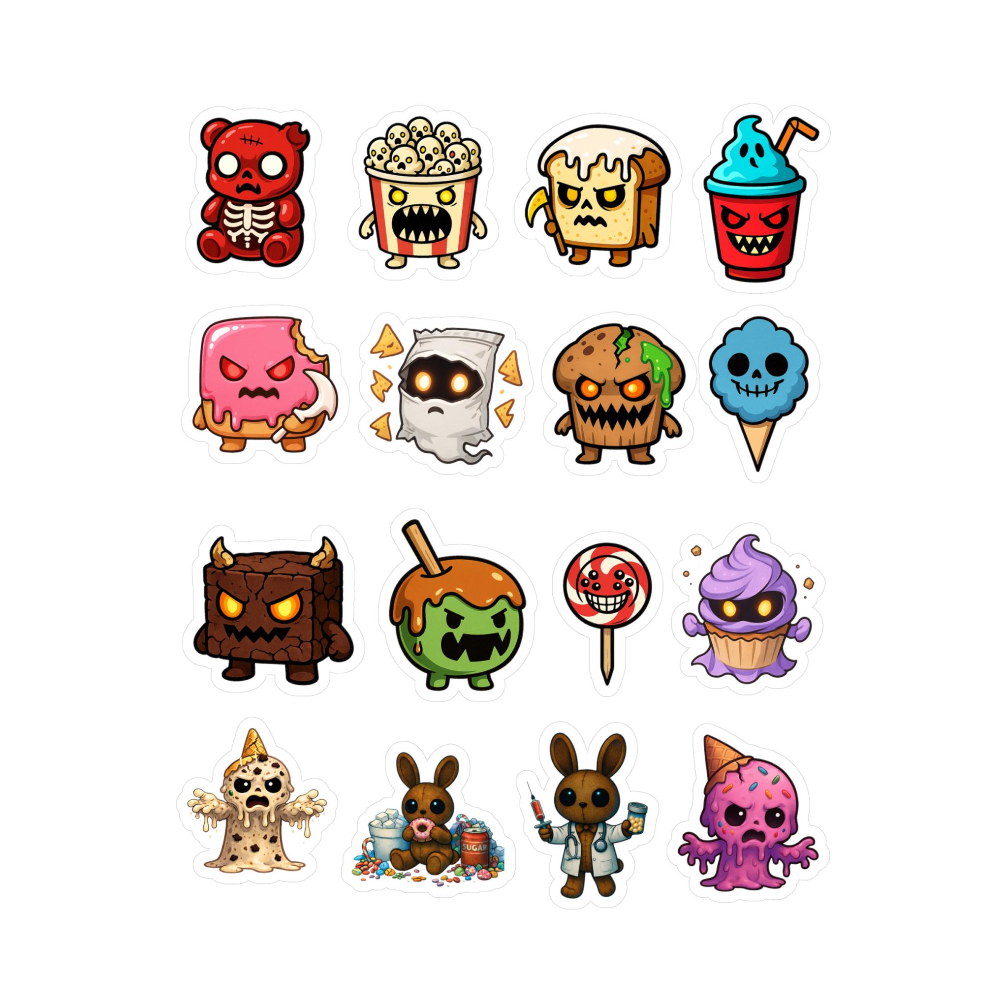 Bright, playful kiss-cut vinyl decals featuring a lineup of spooky-cute dessert and snack characters — from grinning popcorn and haunted marshmallows to gooey ice cream monsters. Each sticker ships with a thin white kiss-cut border that makes them pop on laptops, water bottles, windows, and notebooks. The satin finish keeps colors vibrant while resisting water, scratches, and UV fading for outdoor use. Removable adhesive peels away cleanly when you’re ready to change the mood or rearrange your collection. These decals bring a cheeky, slightly macabre charm to everyday gear and seasonal décor, perfect for collectors and anyone who loves fun, offbeat art.