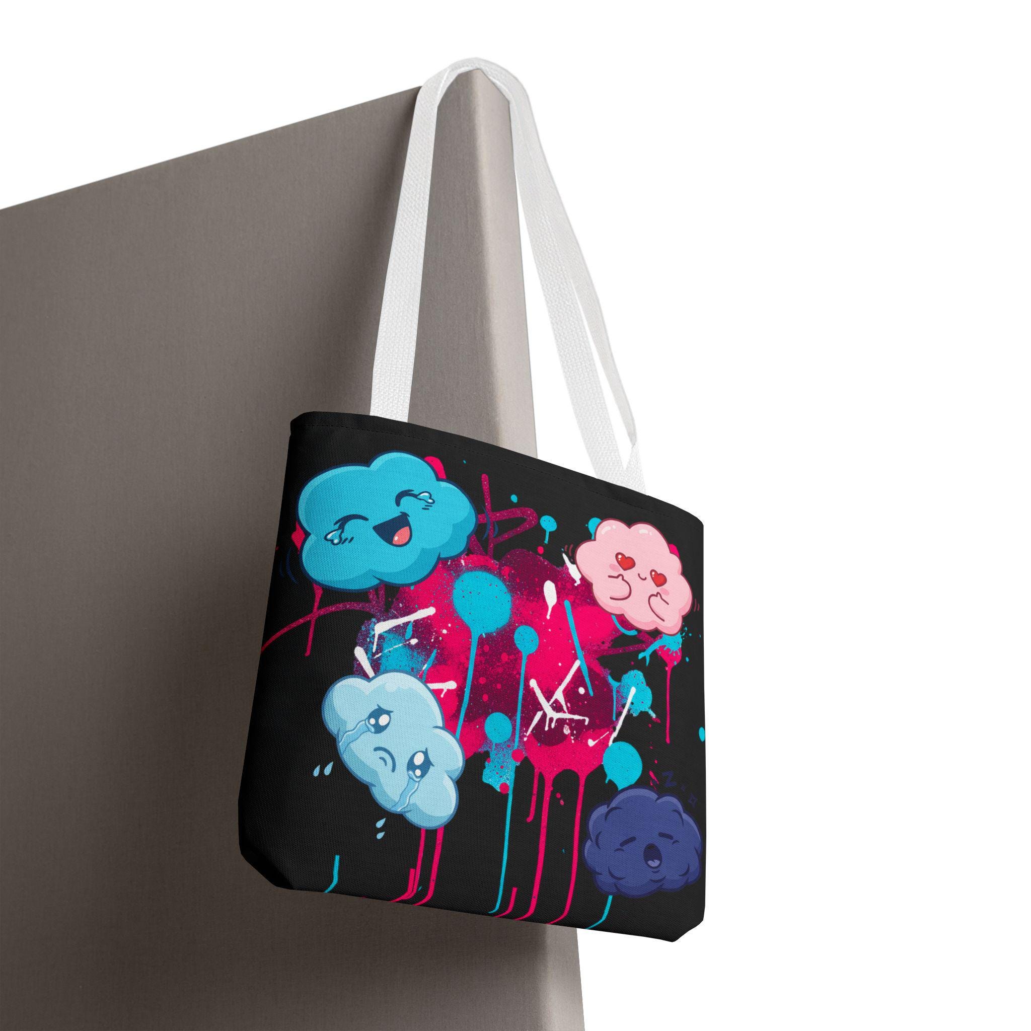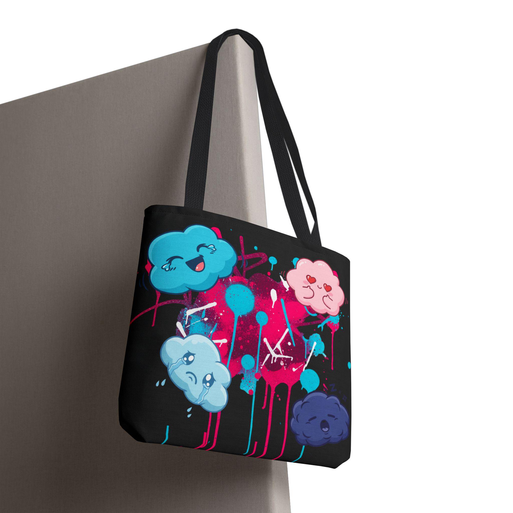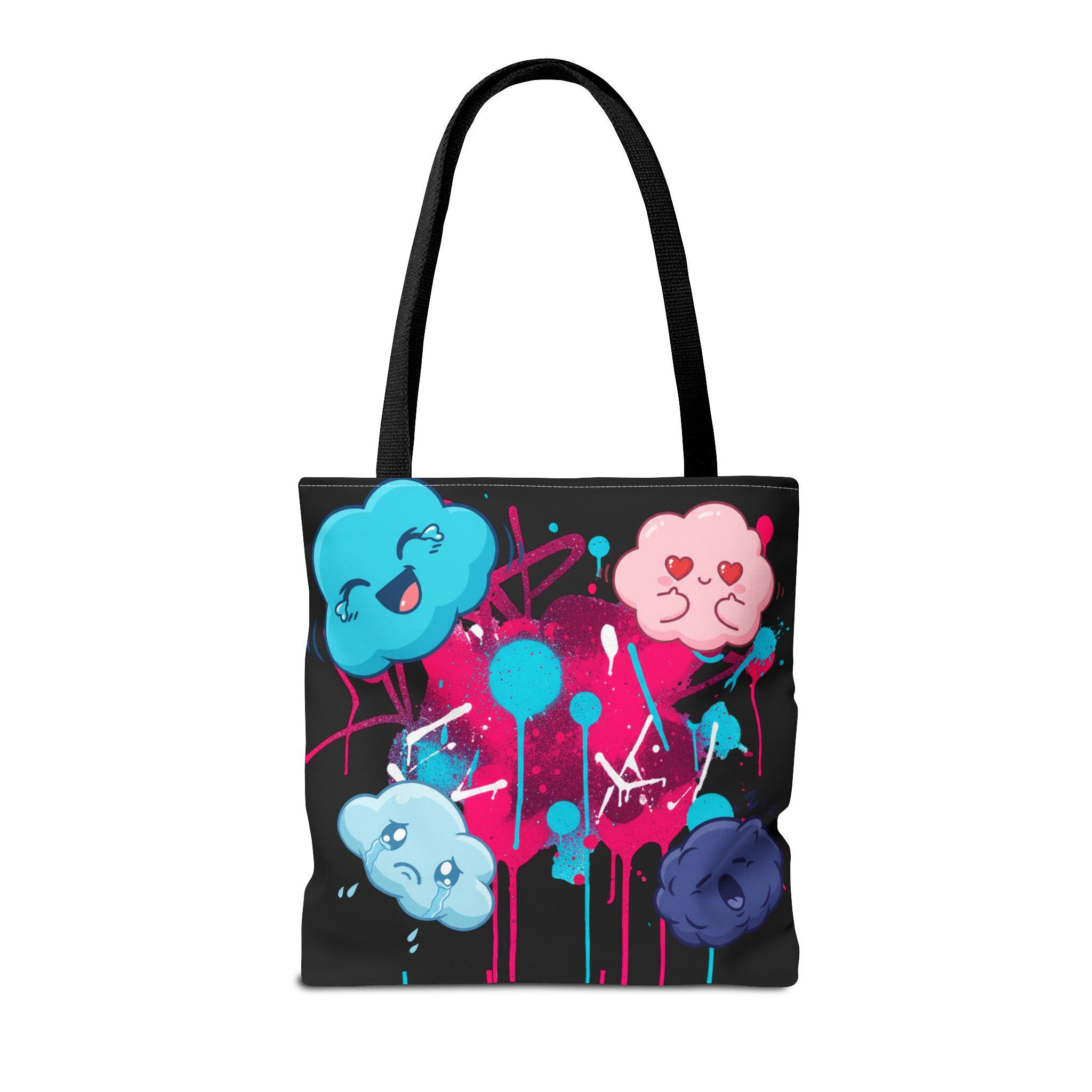 Kawaii Cloud Faces Tote Bag | Black Graffiti Cute Cartoon Print