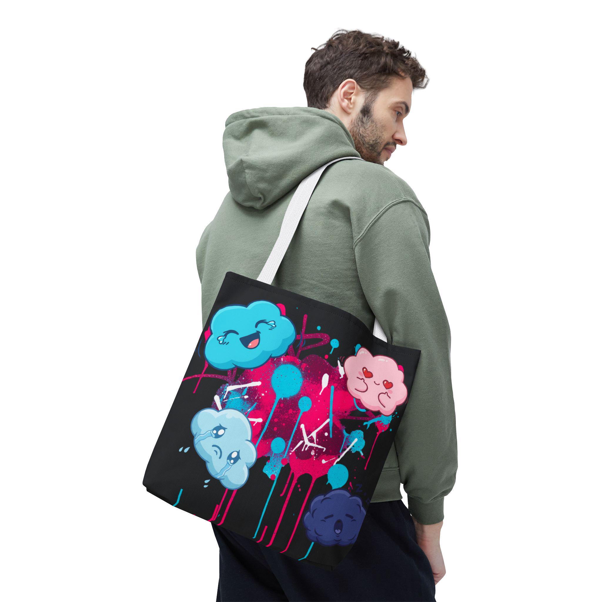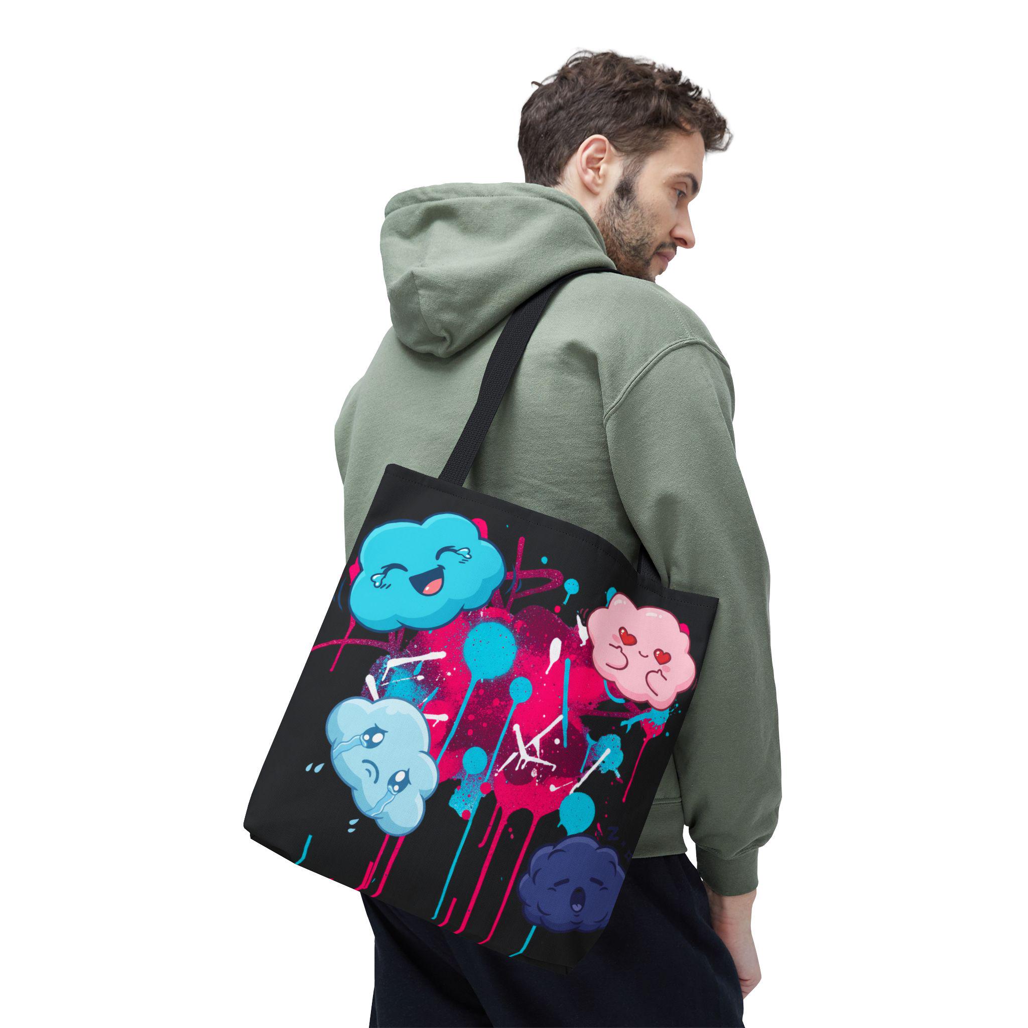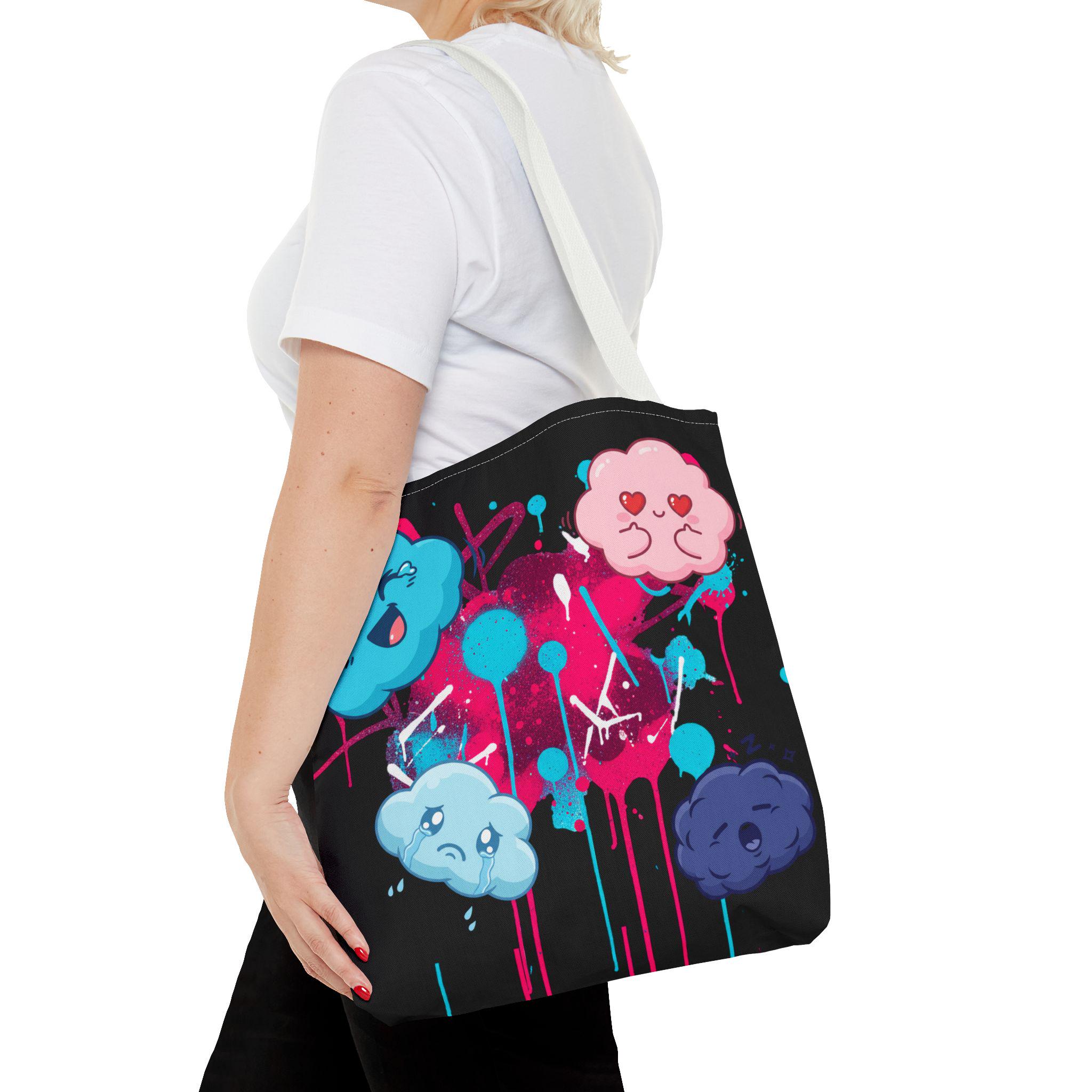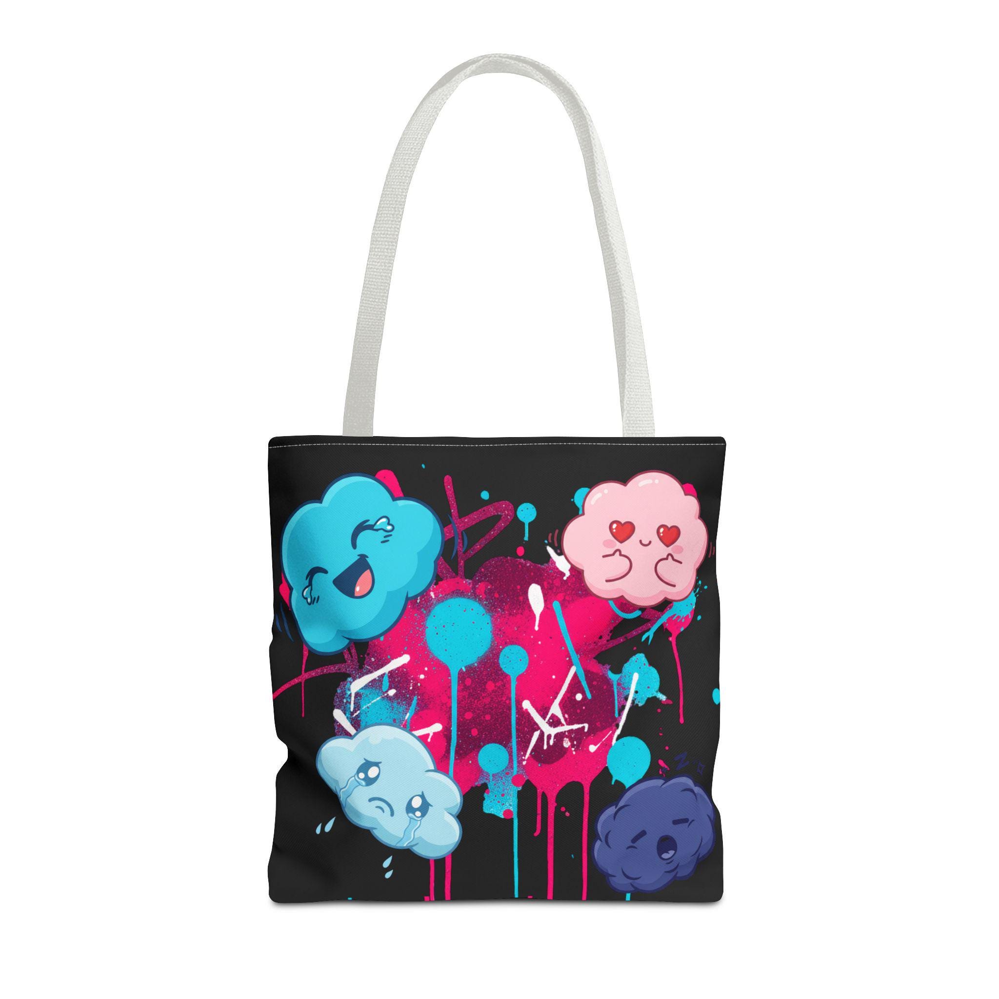 Kawaii Cloud Faces Tote Bag | Black Graffiti Cute Cartoon Print