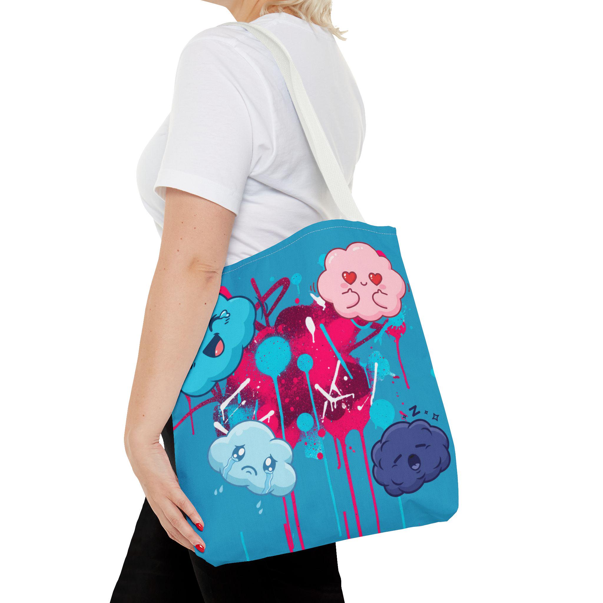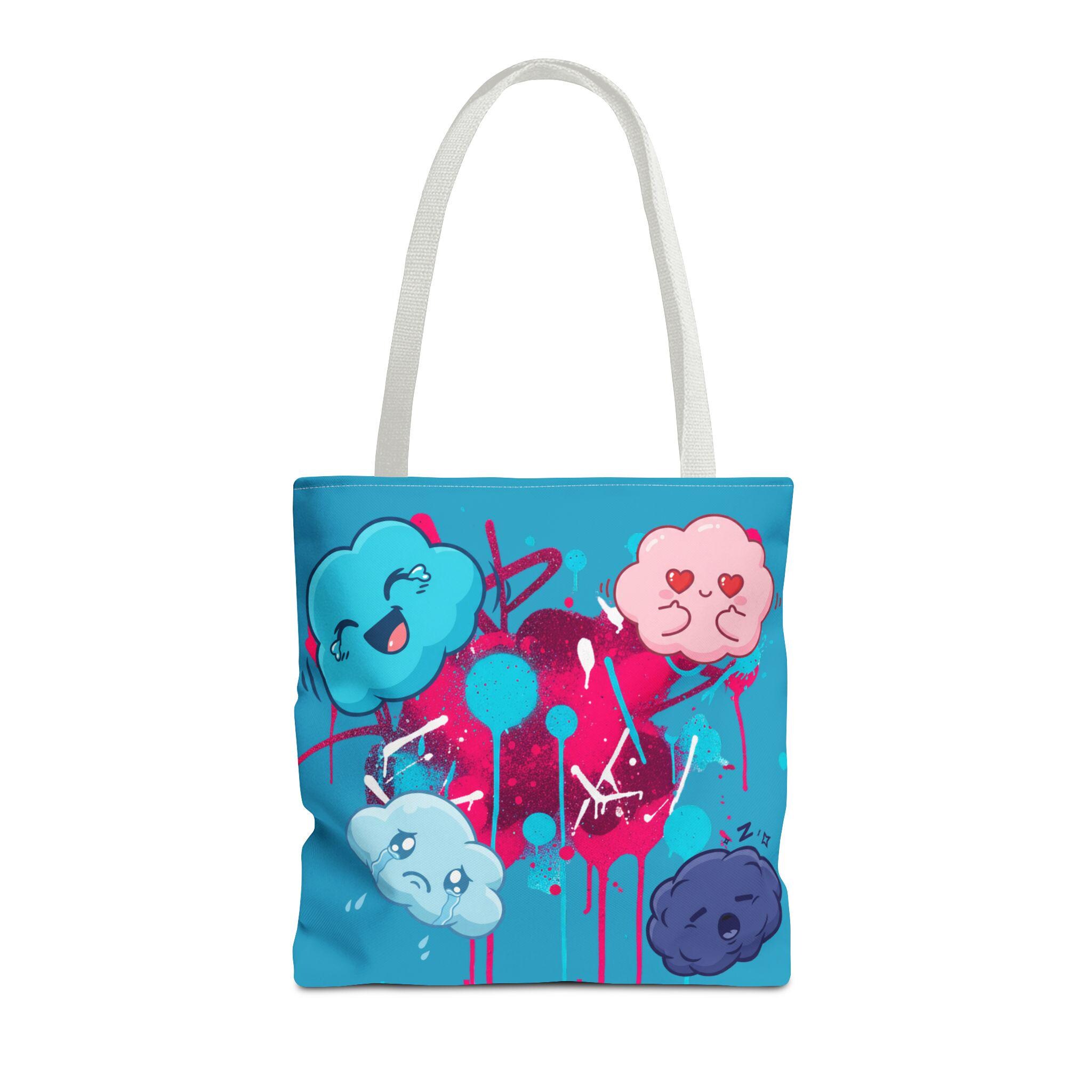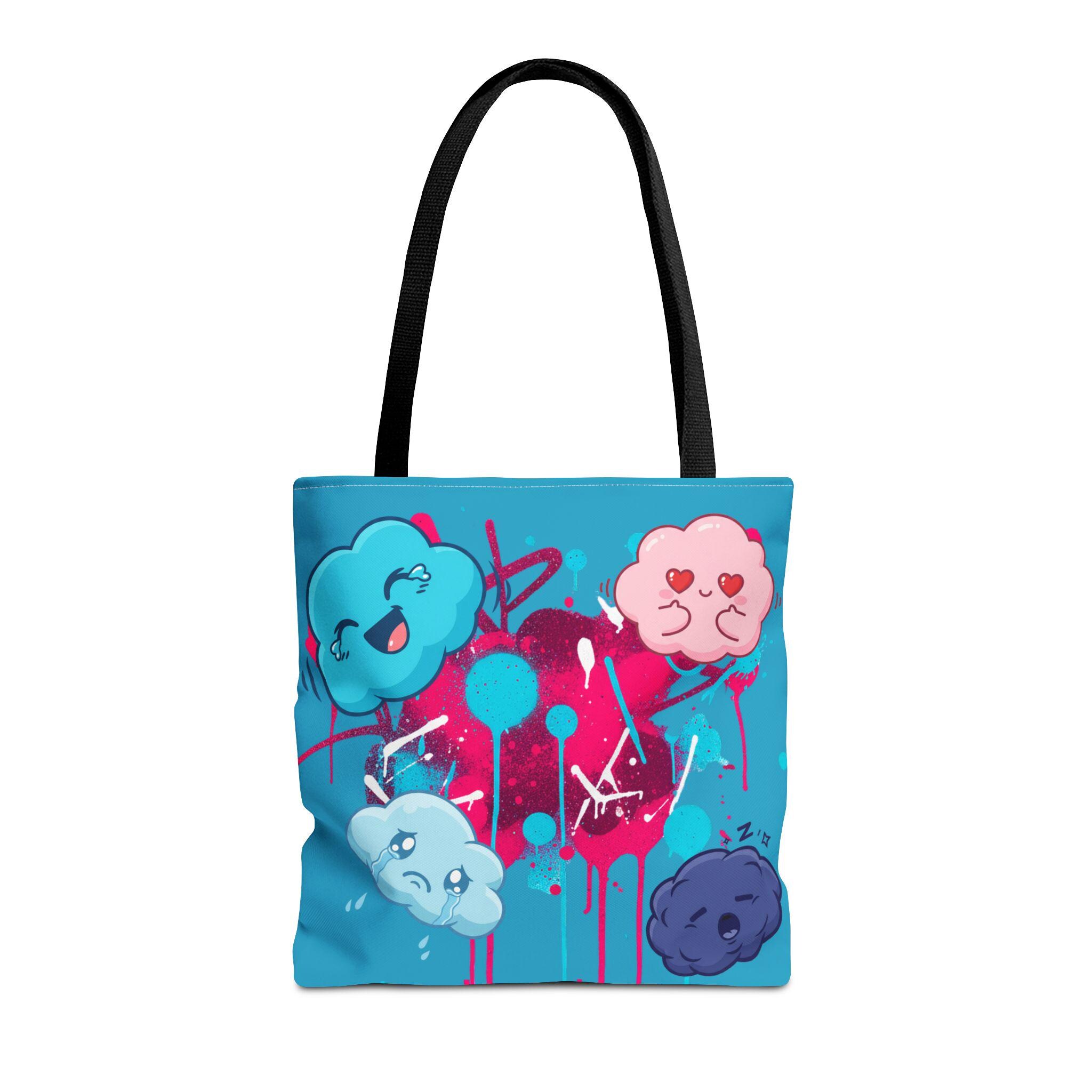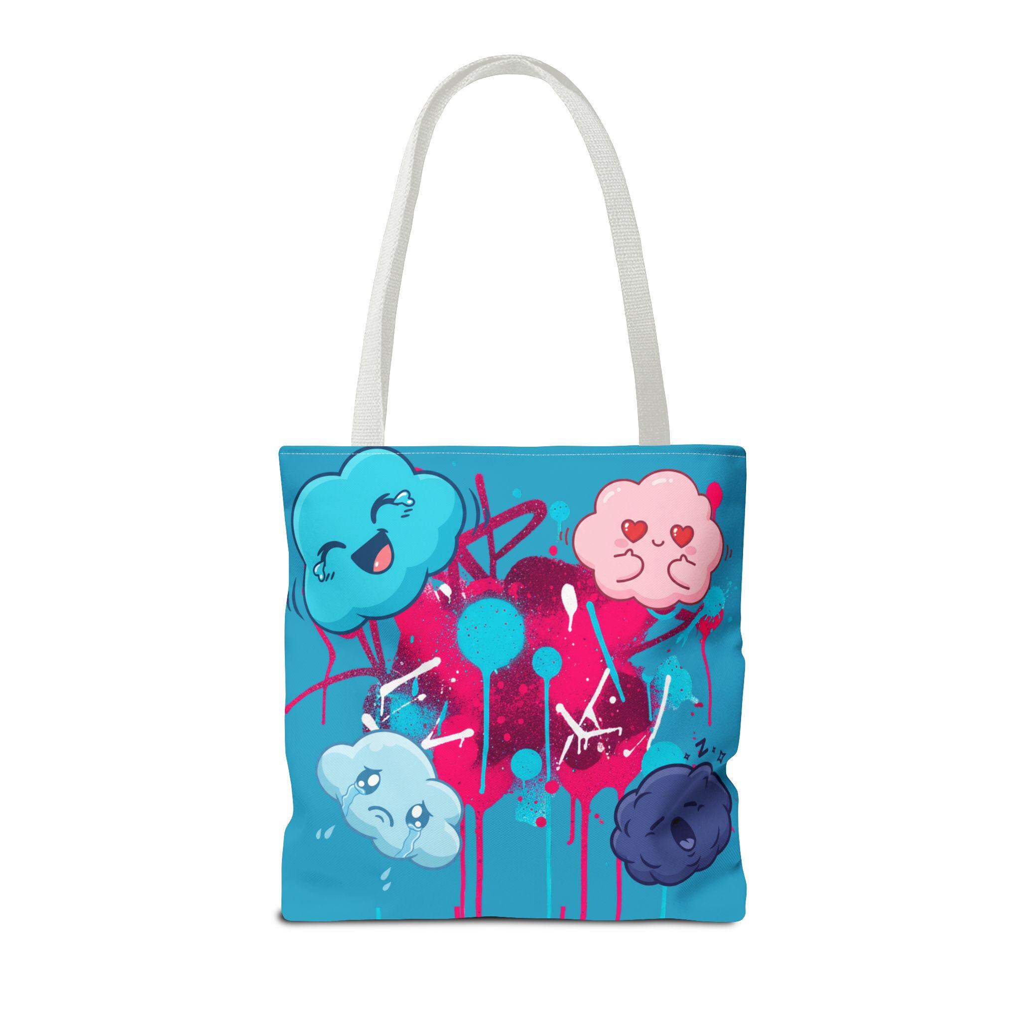 Kawaii Cloud Faces Tote Bag | Blue Graffiti Cute Cartoon Print