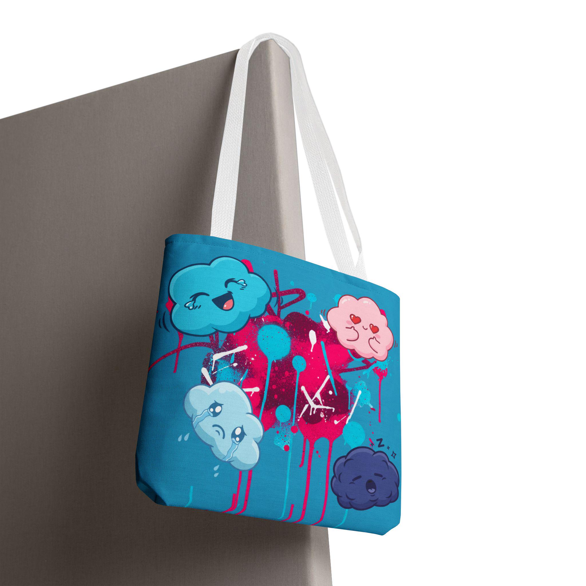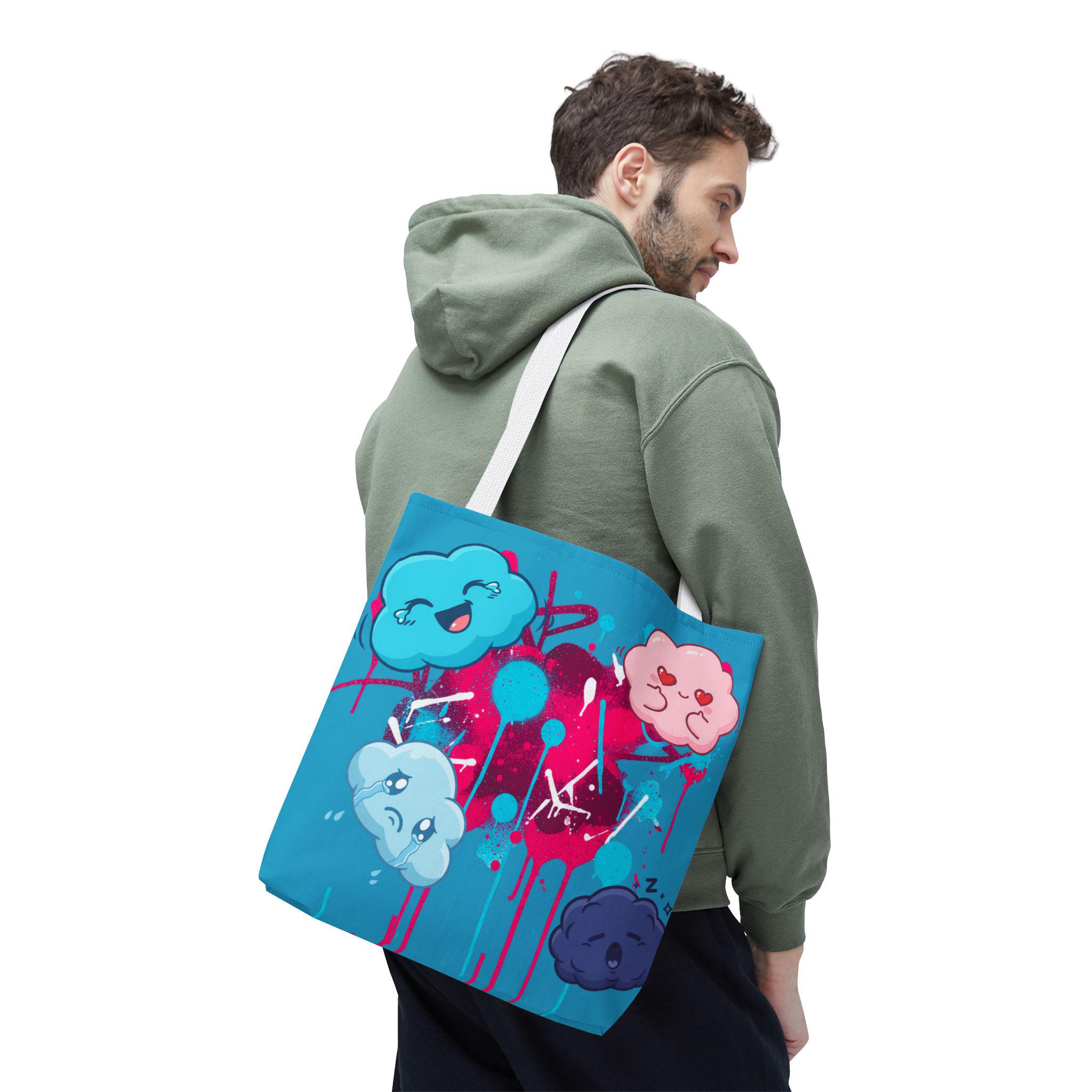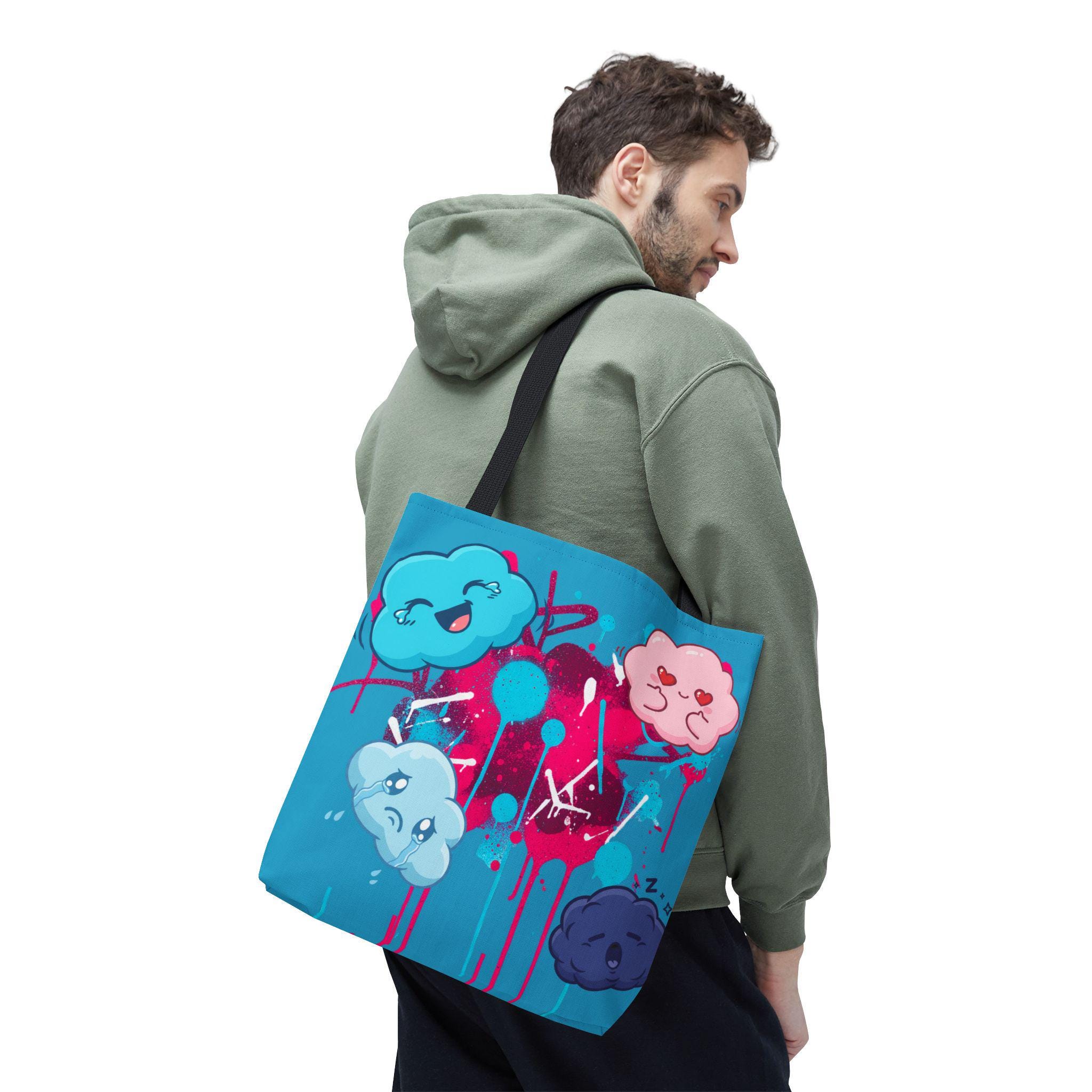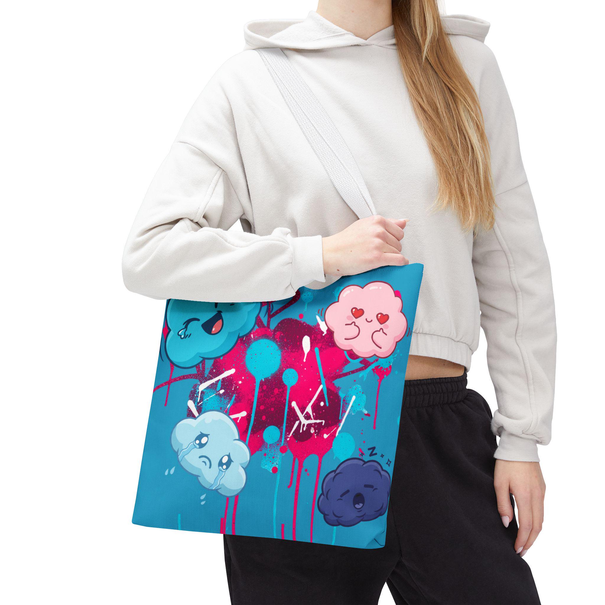 Kawaii Cloud Faces Tote Bag | Blue Graffiti Cute Cartoon Print