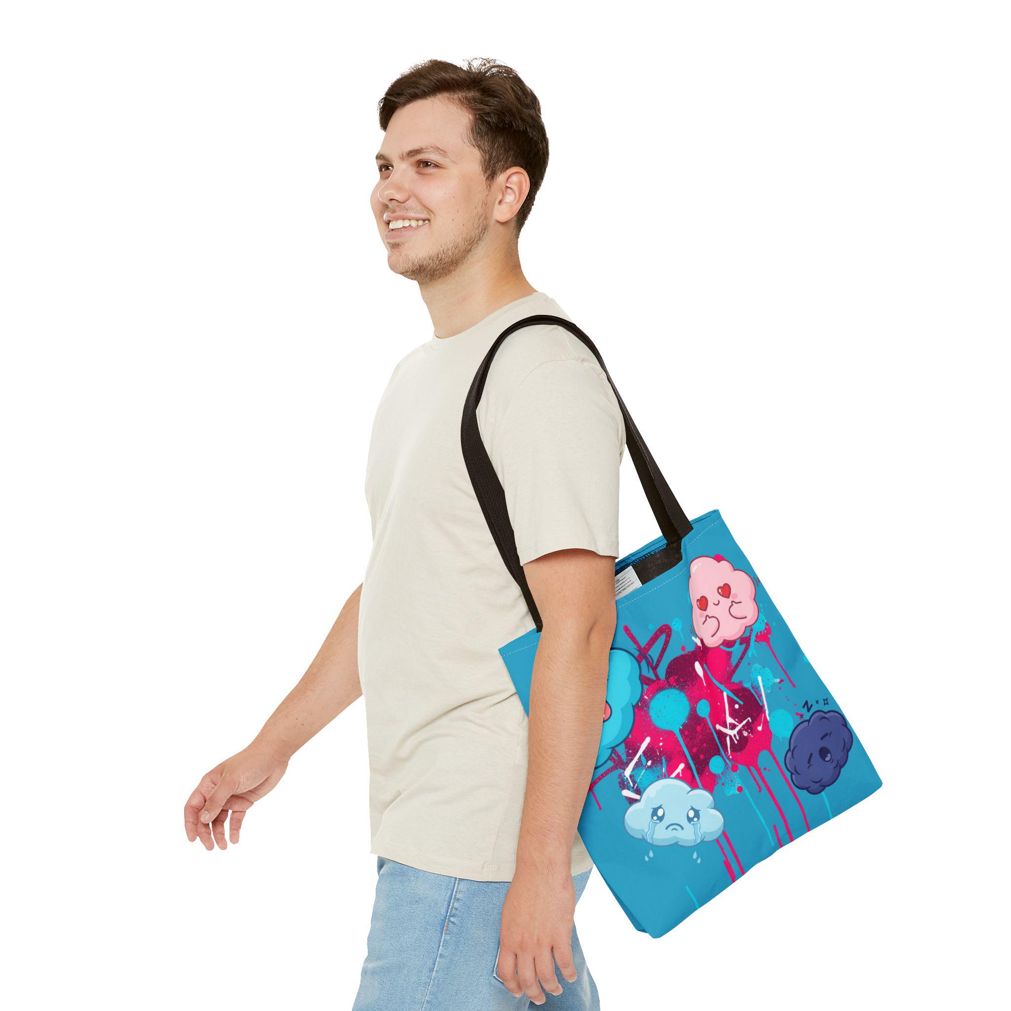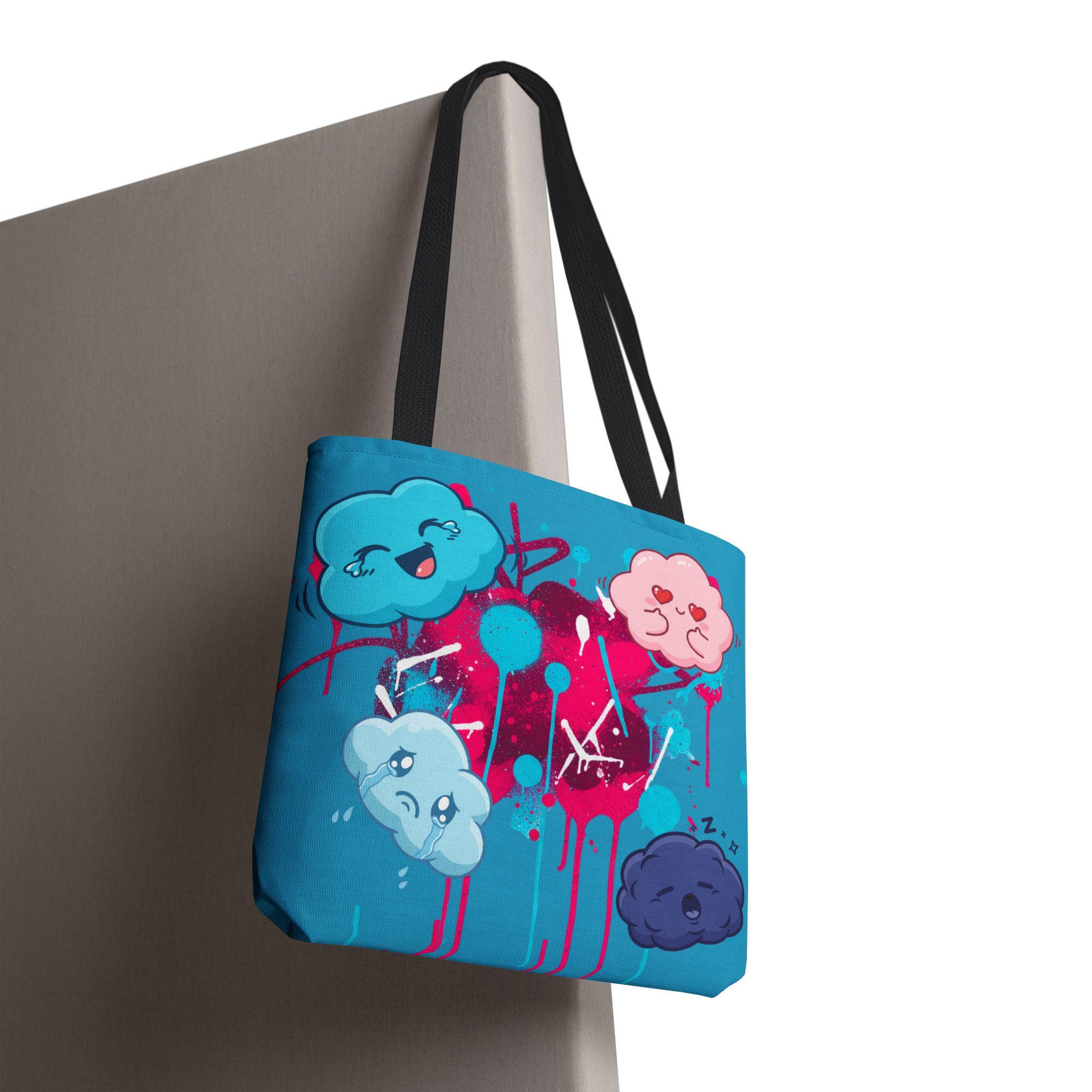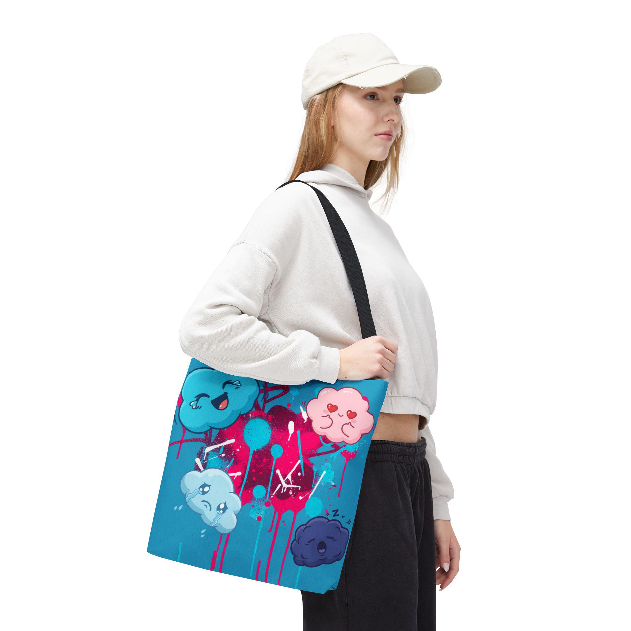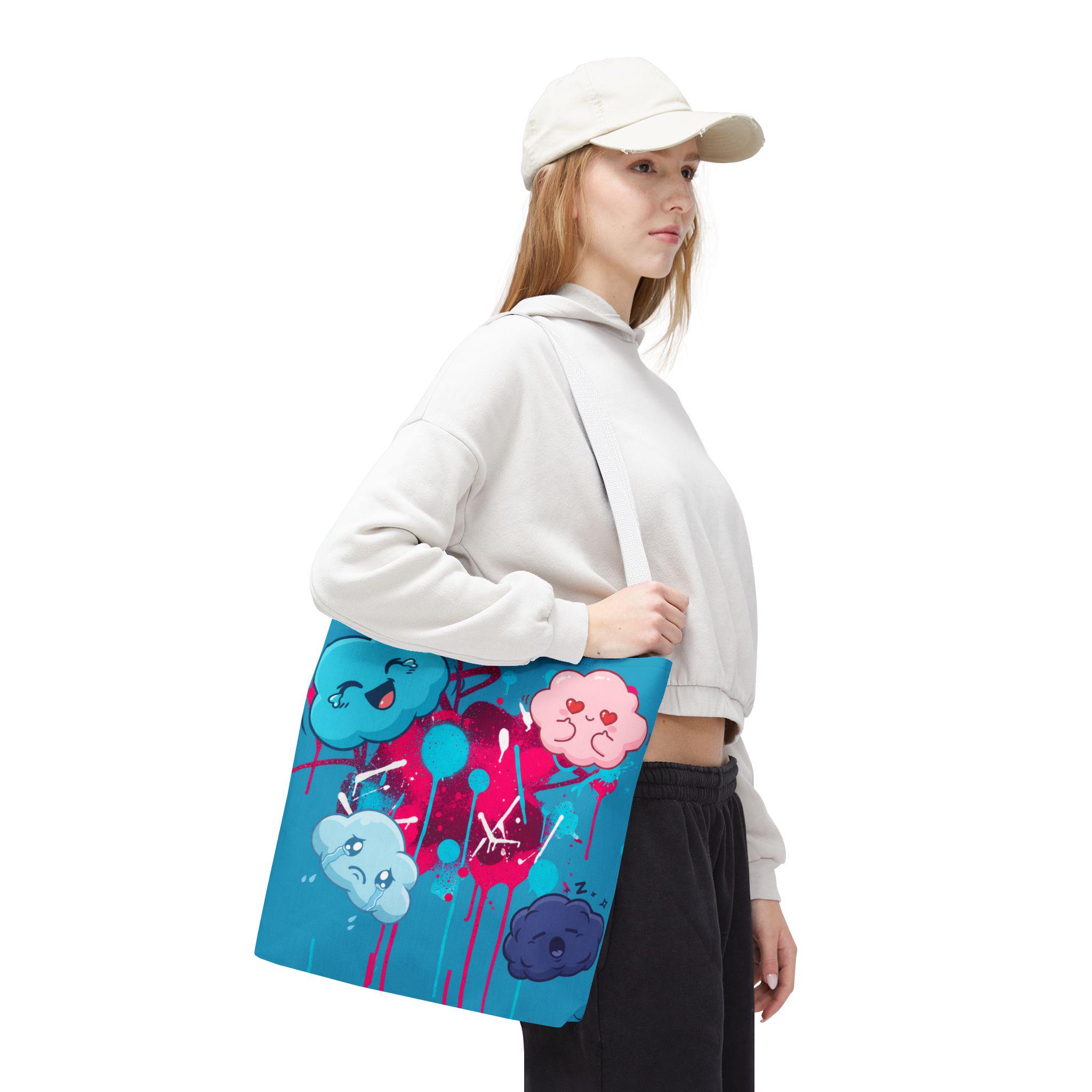 Kawaii Cloud Faces Tote Bag | Blue Graffiti Cute Cartoon Print