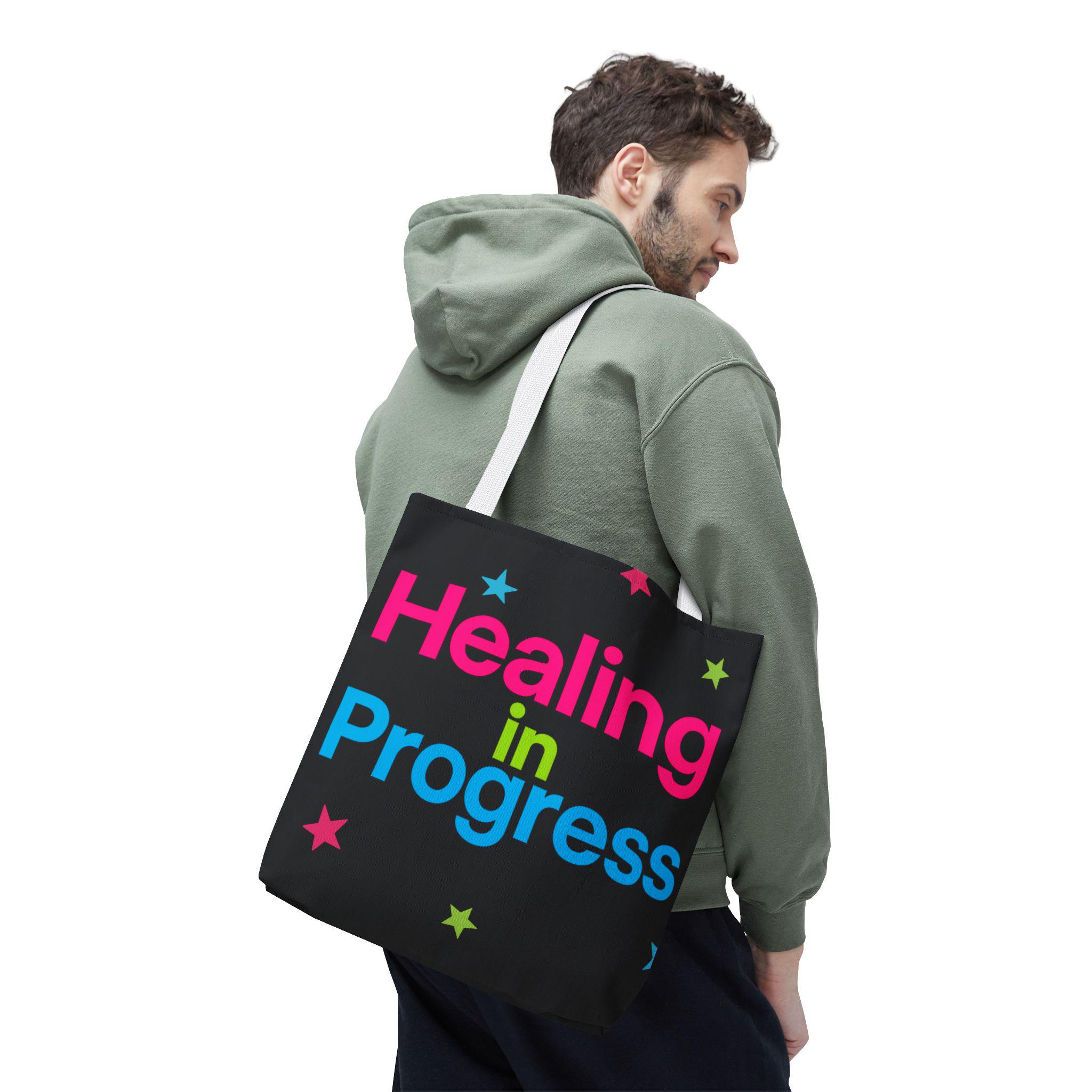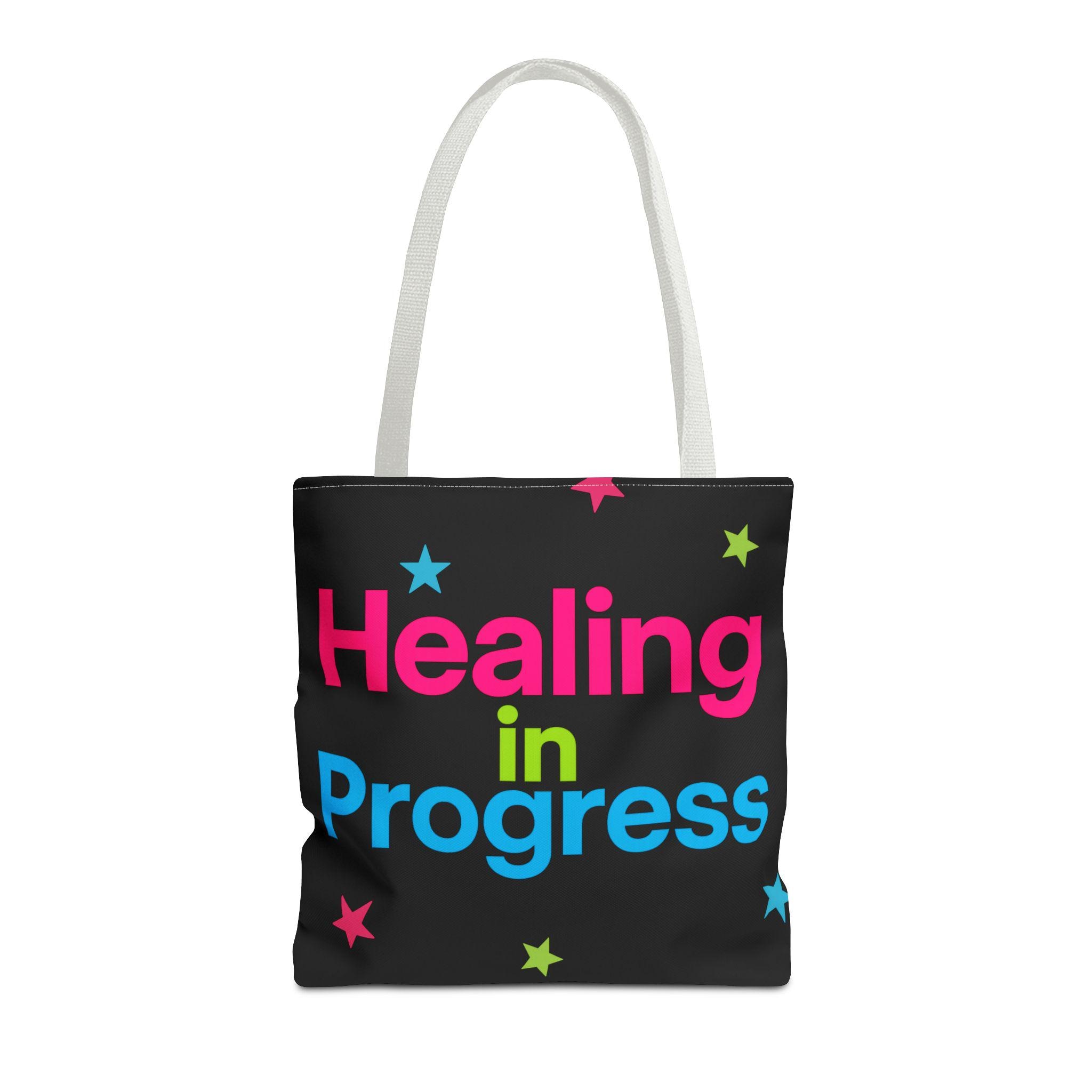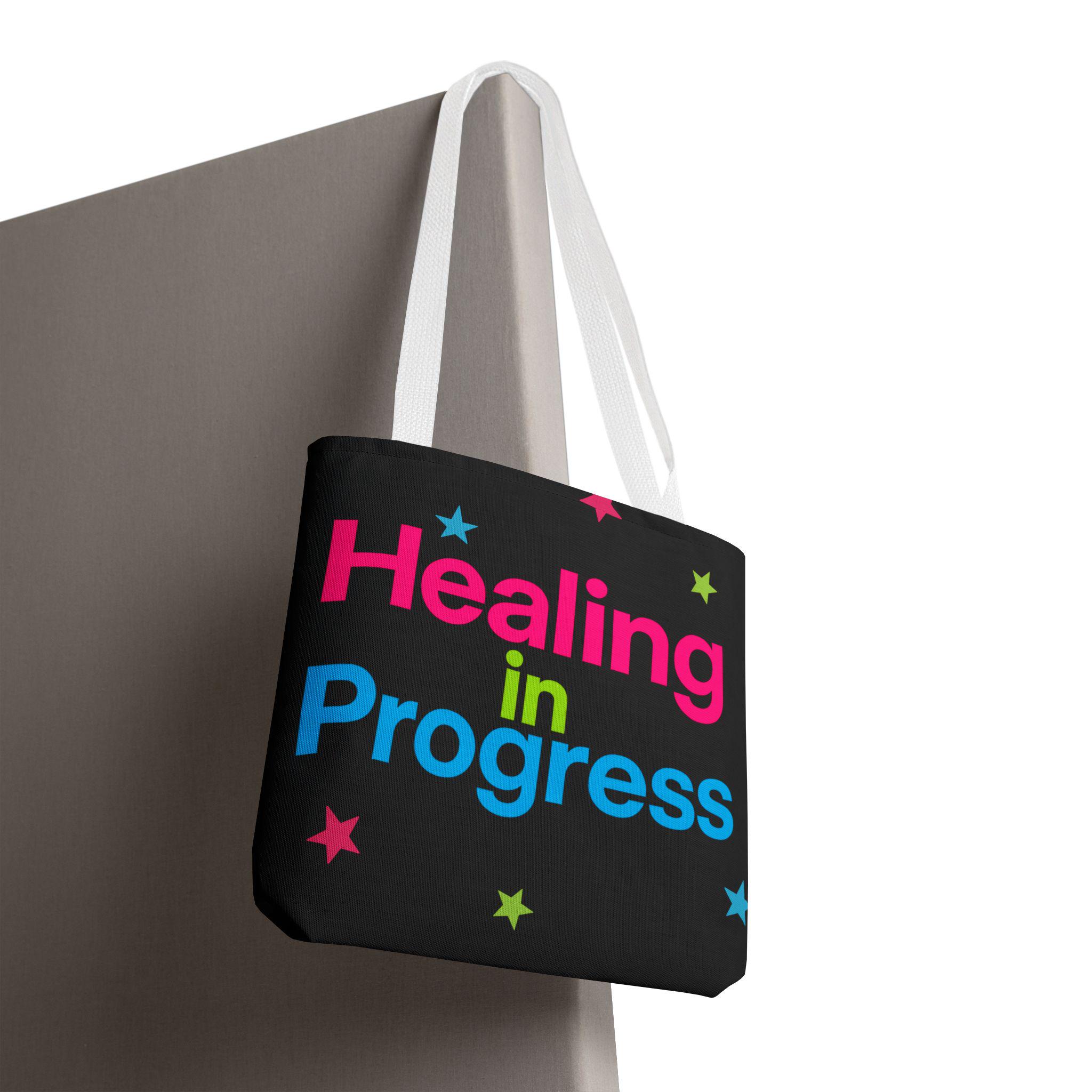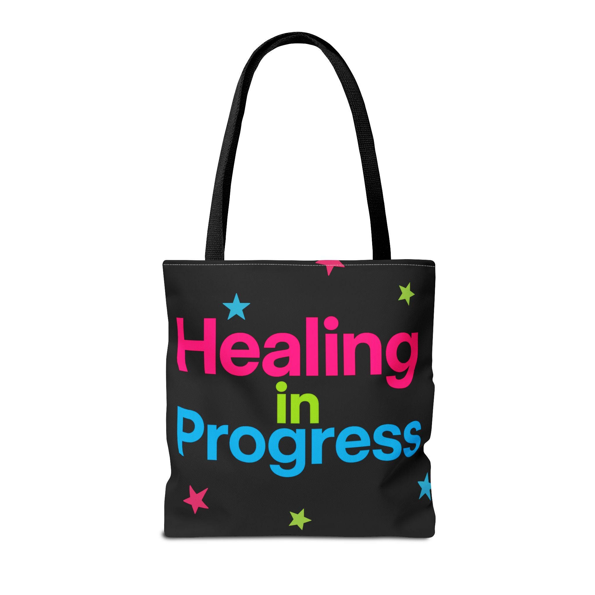 Healing in Progress Tote Bag - BLACK | Colorful Stars All-Over Print