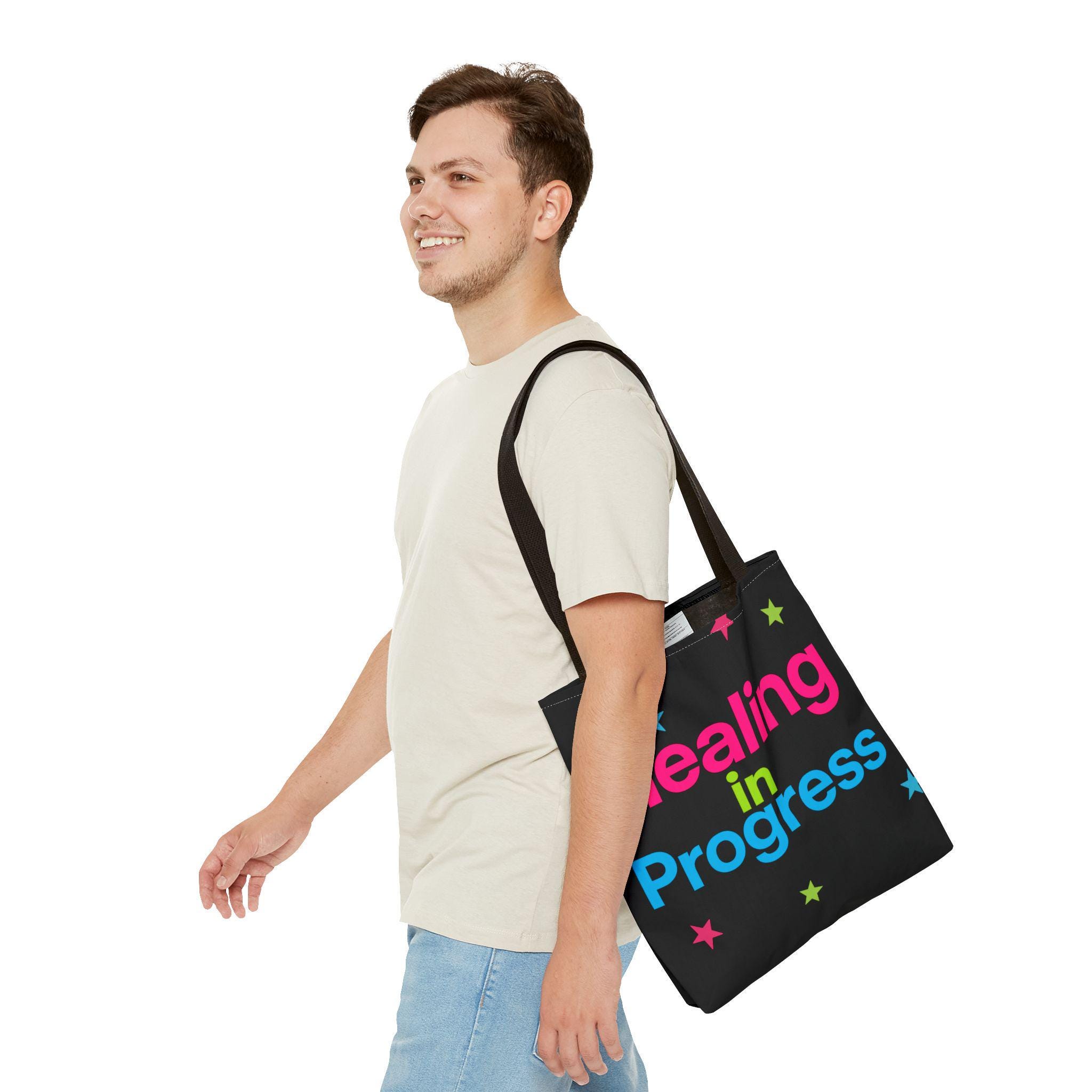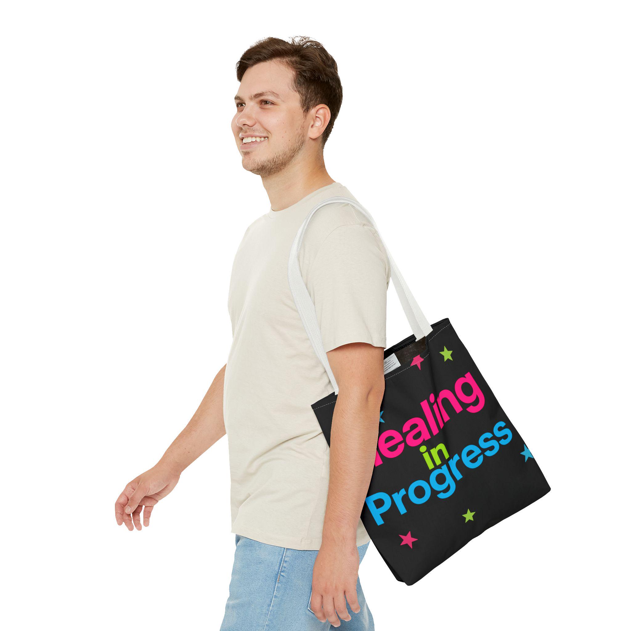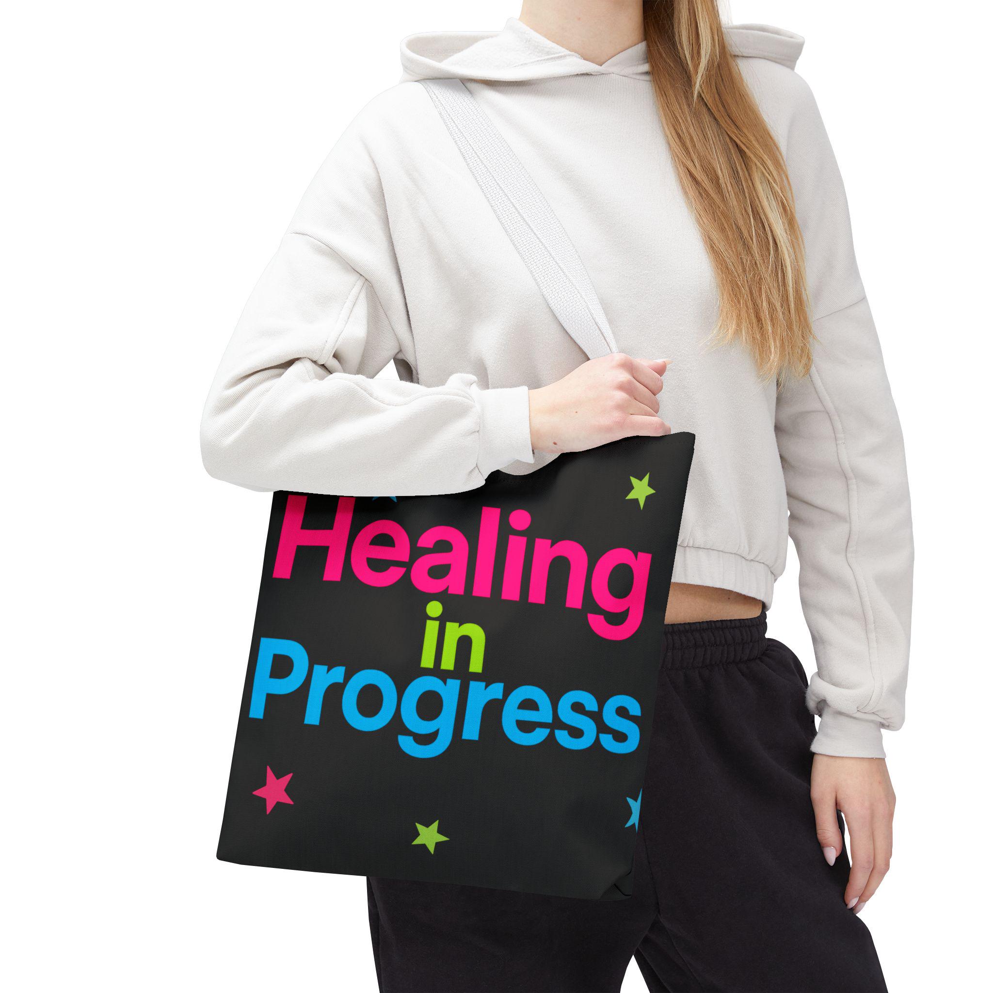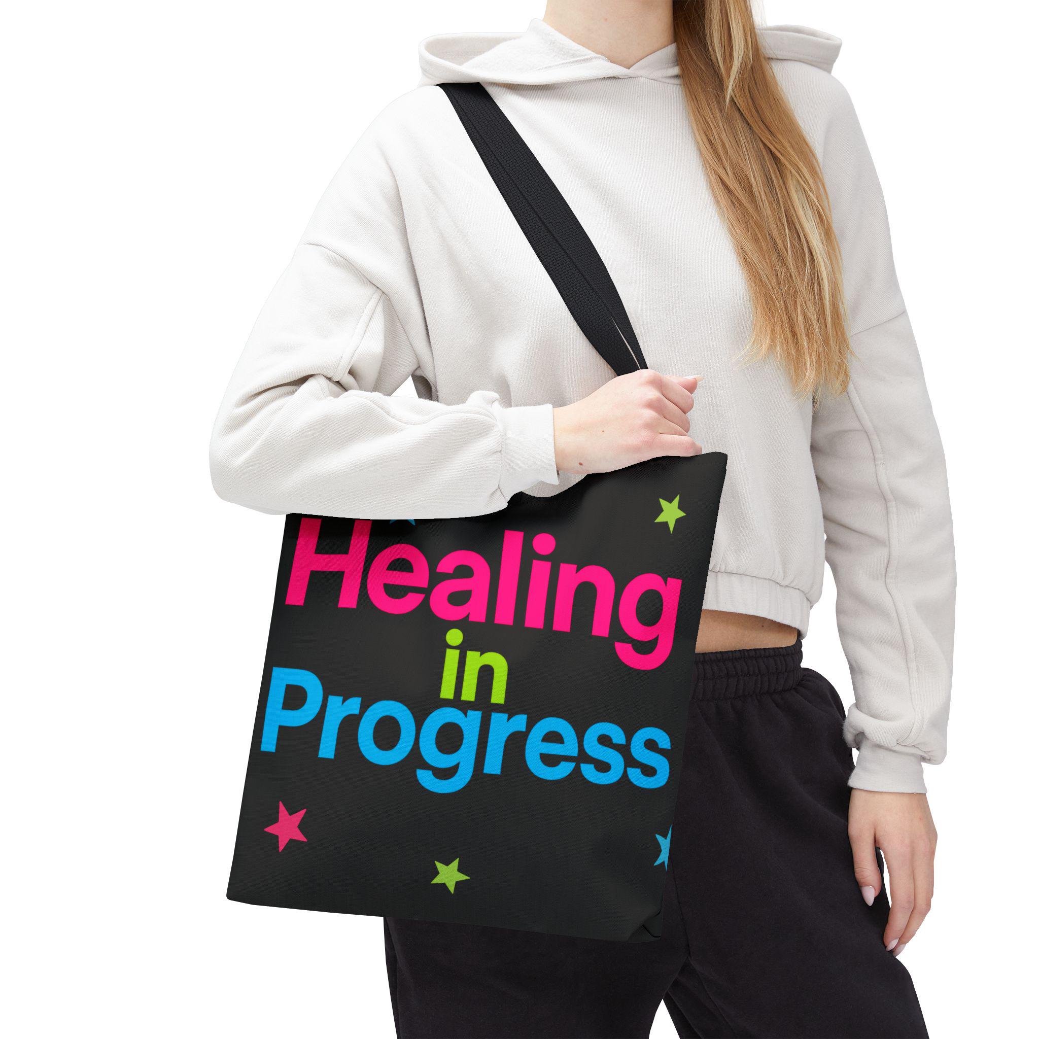 Healing in Progress Tote Bag - BLACK | Colorful Stars All-Over Print