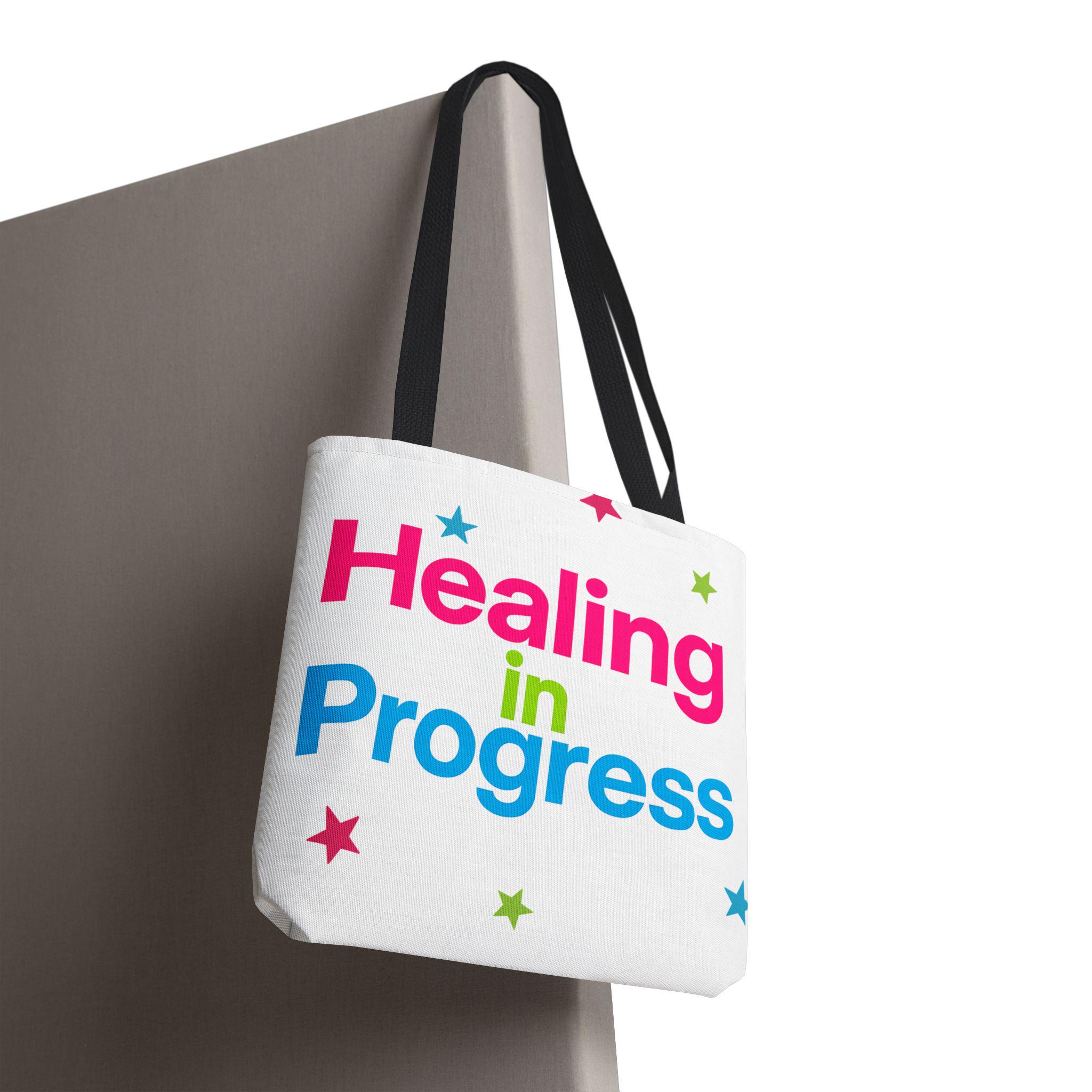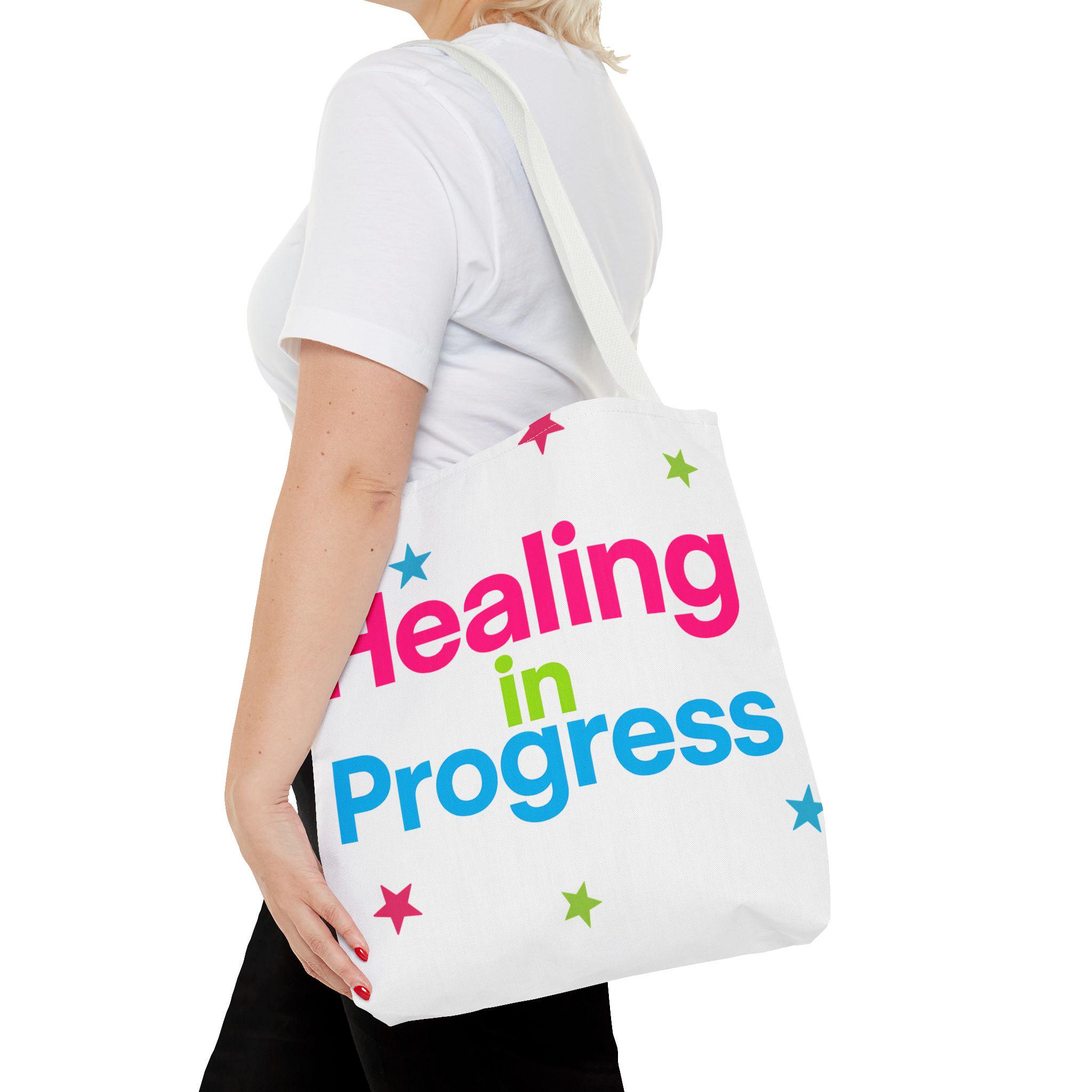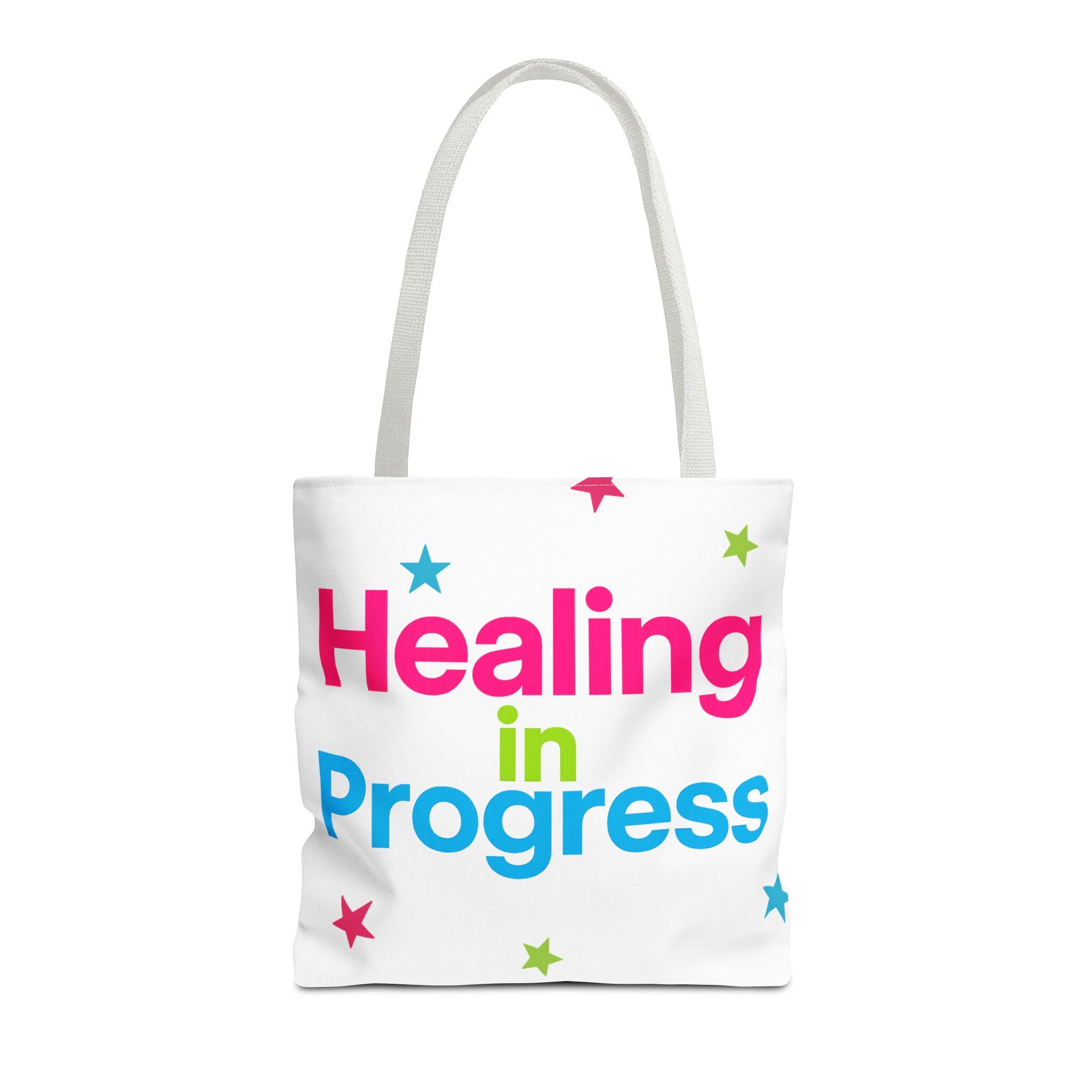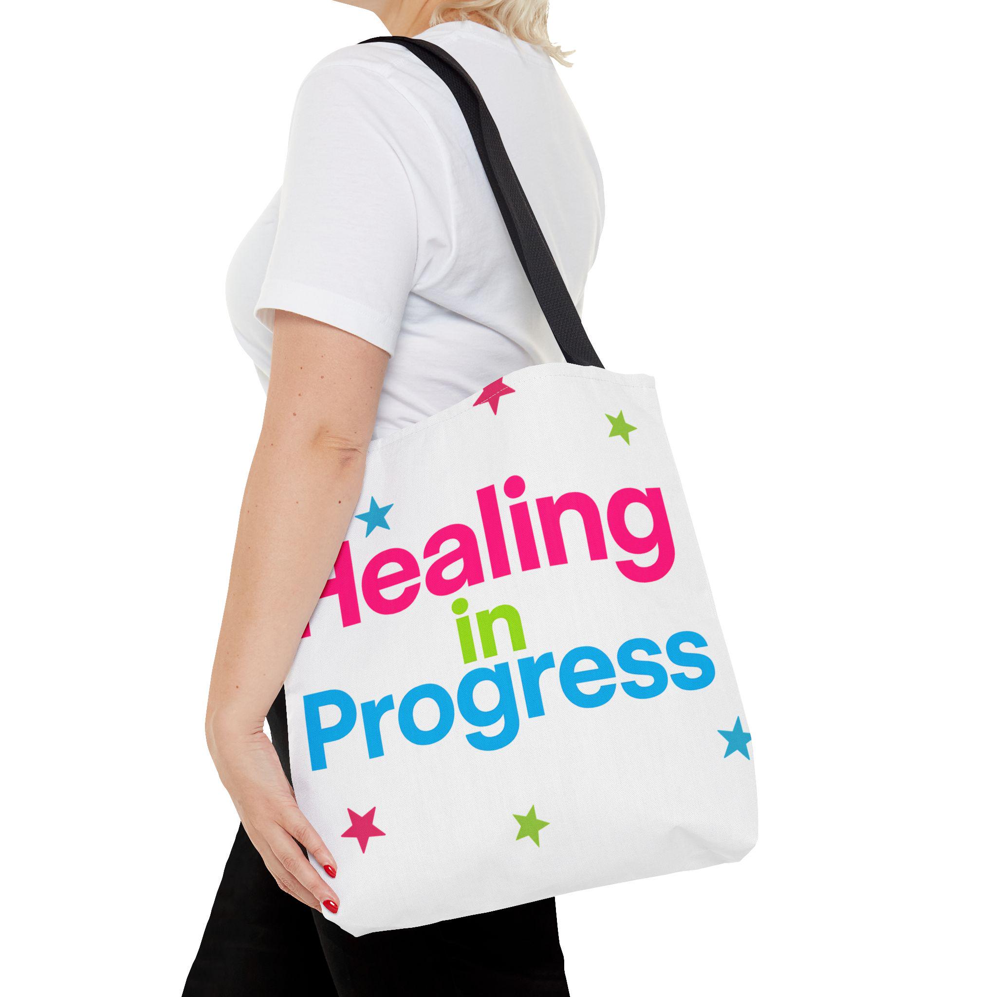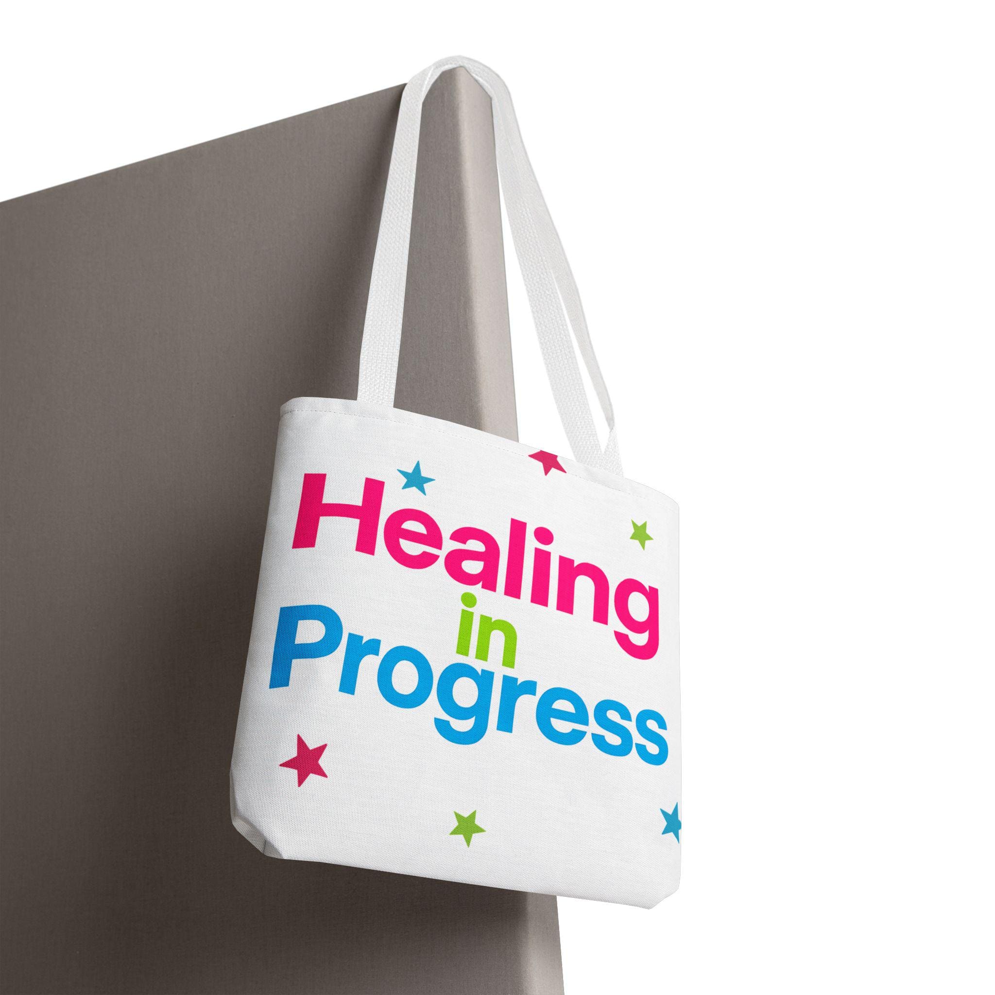 Carry a quiet declaration of growth with this bold, everyday tote. The black canvas lets the neon lettering — bright pink, electric blue, and lime green — pop with hopeful energy. Scattered stars add a playful, gentle touch, turning a practical bag into a small statement of resilience and self-care. Spacious boxed corners and a single large compartment hold a journal, water bottle, knitting project, or clinic essentials, while reinforced handles stand up to daily wear. It’s the kind of bag someone reaches for on appointments, walks, or slow Sundays when small wins matter.