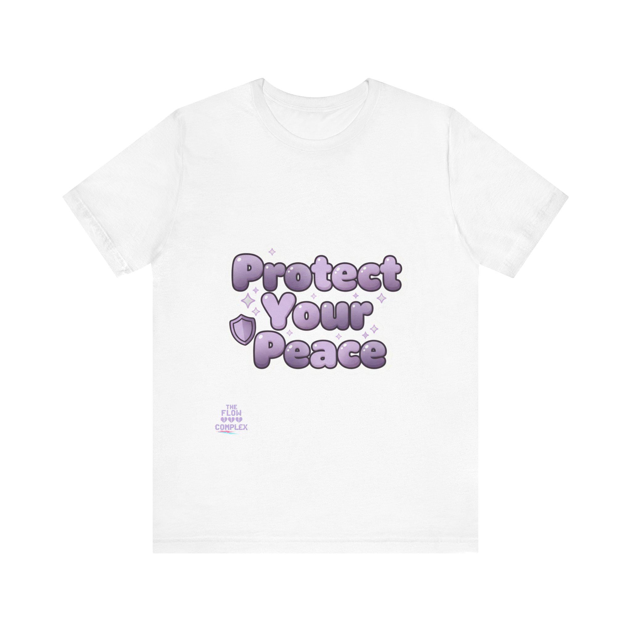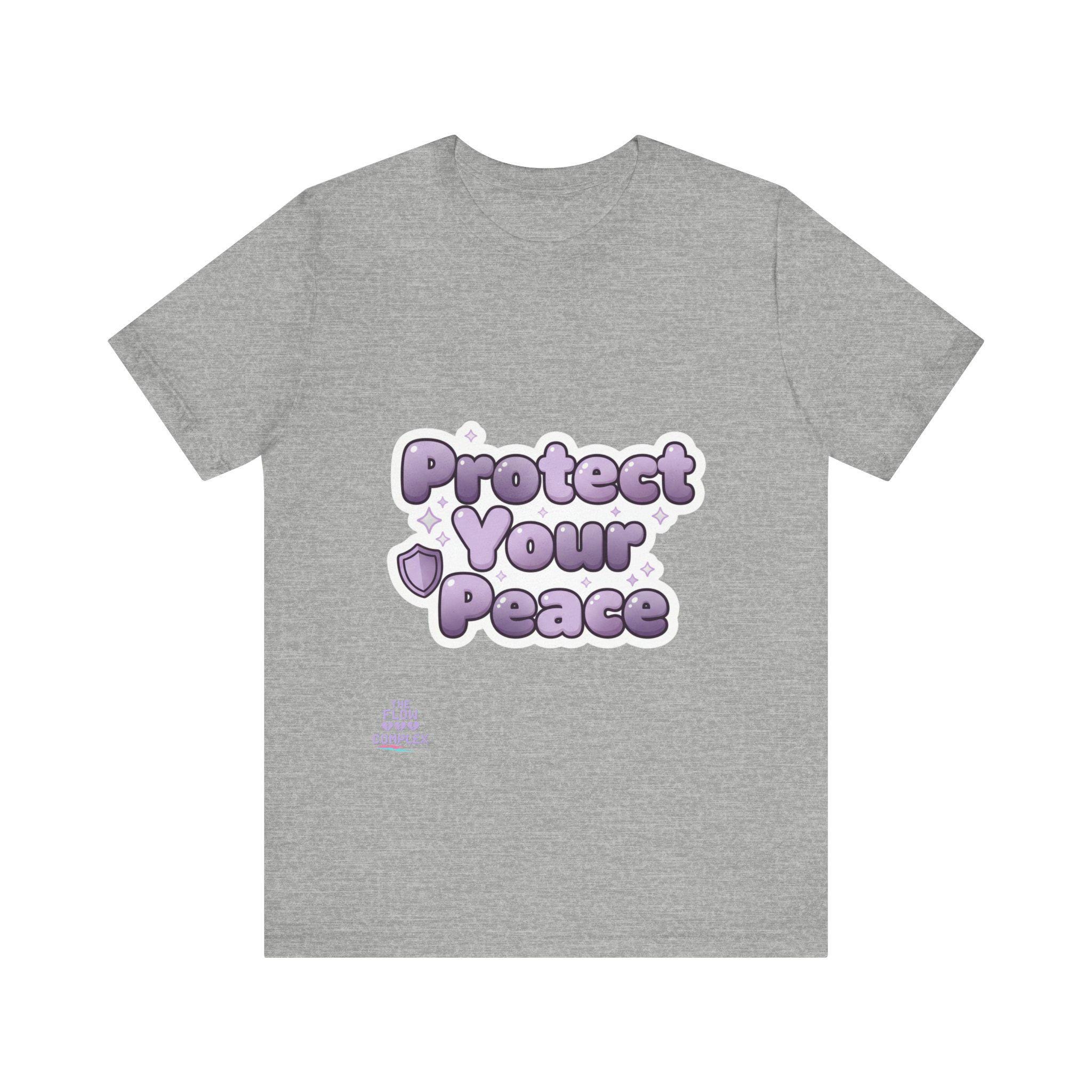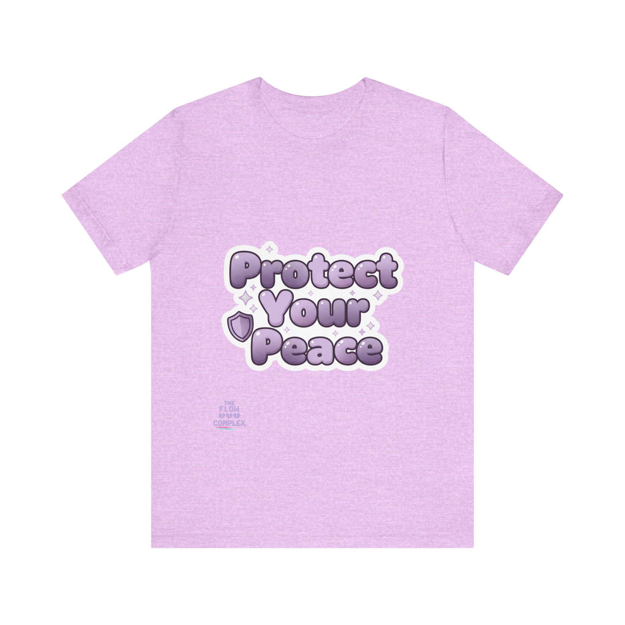 Soft, airy, and quietly bold — this lightweight tee carries a gentle reminder: Protect Your Peace. The plush, bubble-like lavender lettering sits front and center, surrounded by tiny stars and a shield accent that reads like a small pledge. Made from smooth Airlume combed and ring-spun cotton, the shirt drapes easily for everyday wear and layers without bulk. It’s cut with side seams and a ribbed crew collar for lasting shape, and thoughtful details like shoulder tape and a tear-away label keep it comfortable all day. Wear it to slow down, set boundaries, or share a calm vibe with people around you.