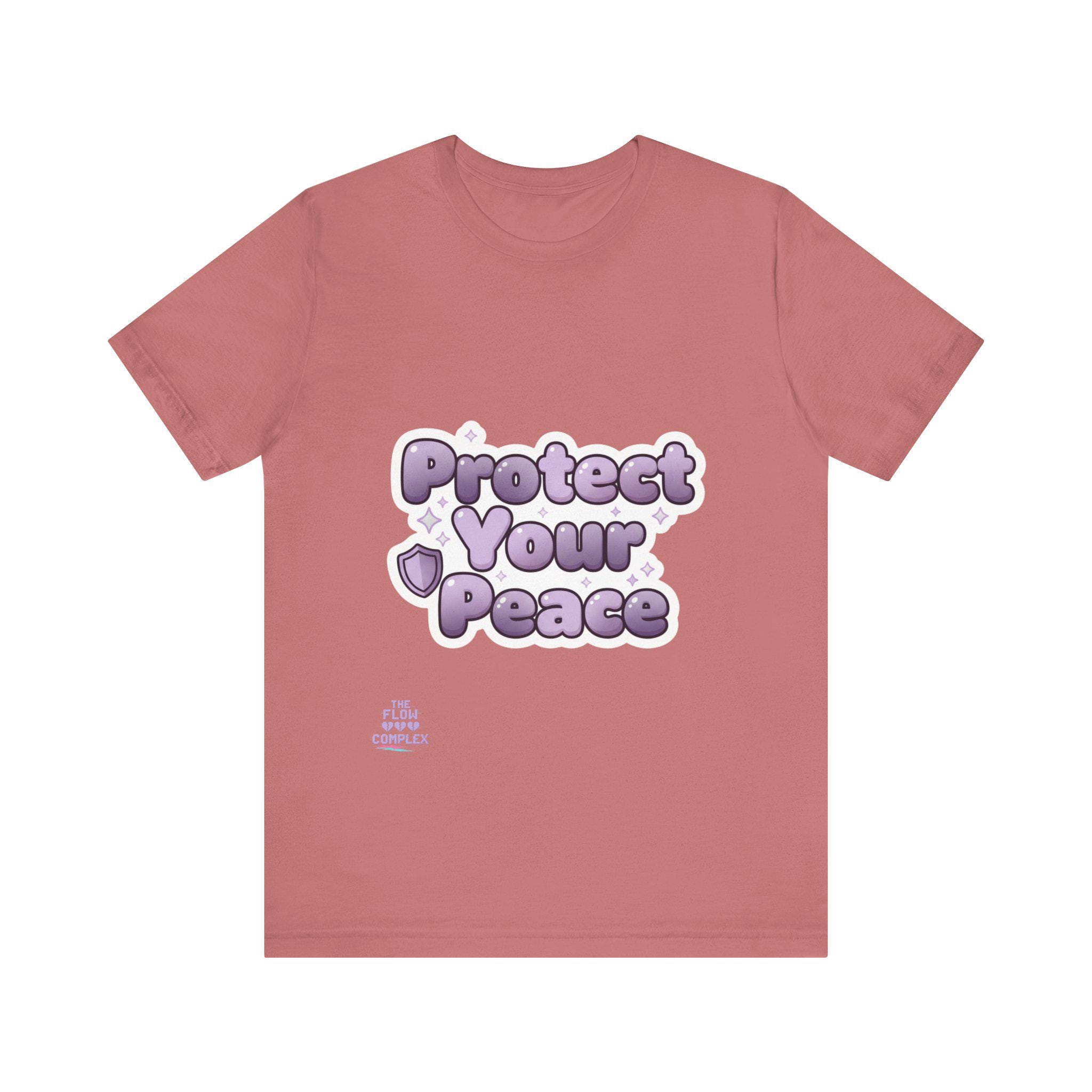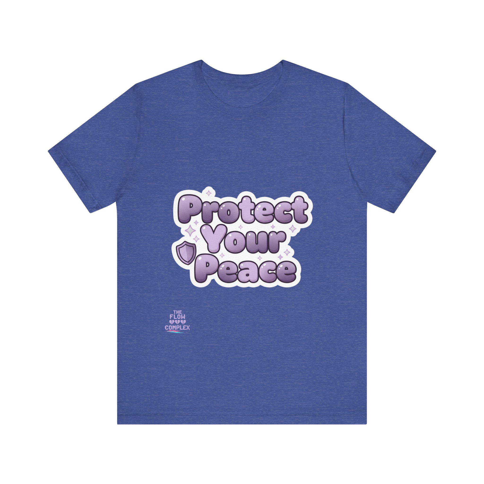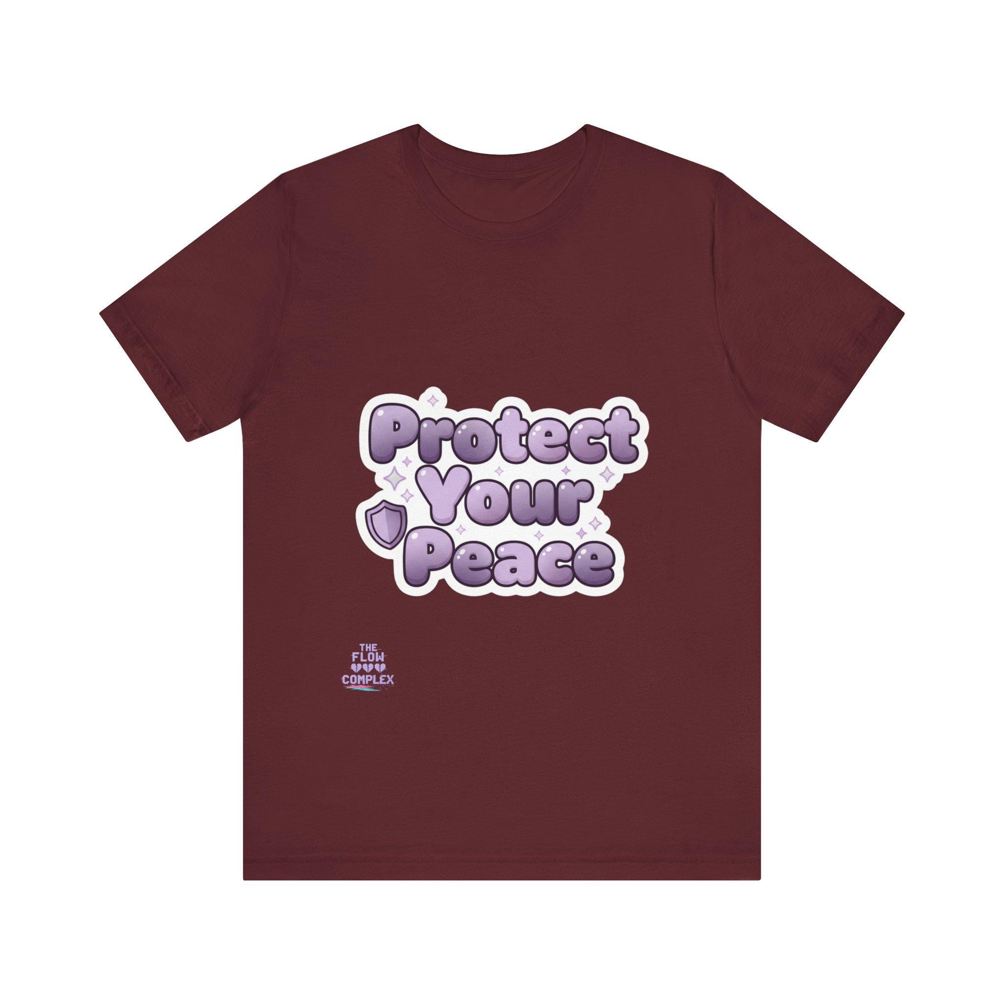 Soft, airy, and quietly bold — this lightweight tee carries a gentle reminder: Protect Your Peace. The plush, bubble-like lavender lettering sits front and center, surrounded by tiny stars and a shield accent that reads like a small pledge. Made from smooth Airlume combed and ring-spun cotton, the shirt drapes easily for everyday wear and layers without bulk. It’s cut with side seams and a ribbed crew collar for lasting shape, and thoughtful details like shoulder tape and a tear-away label keep it comfortable all day. Wear it to slow down, set boundaries, or share a calm vibe with people around you.