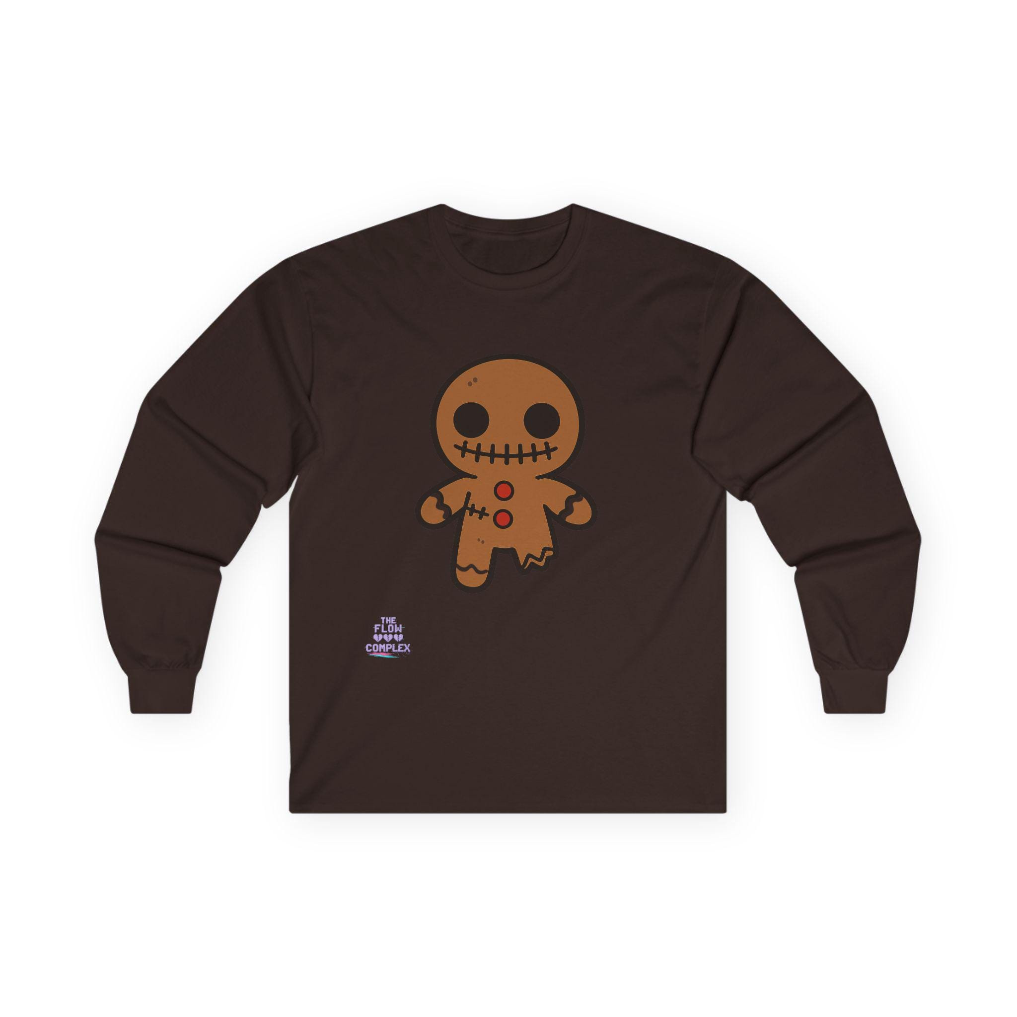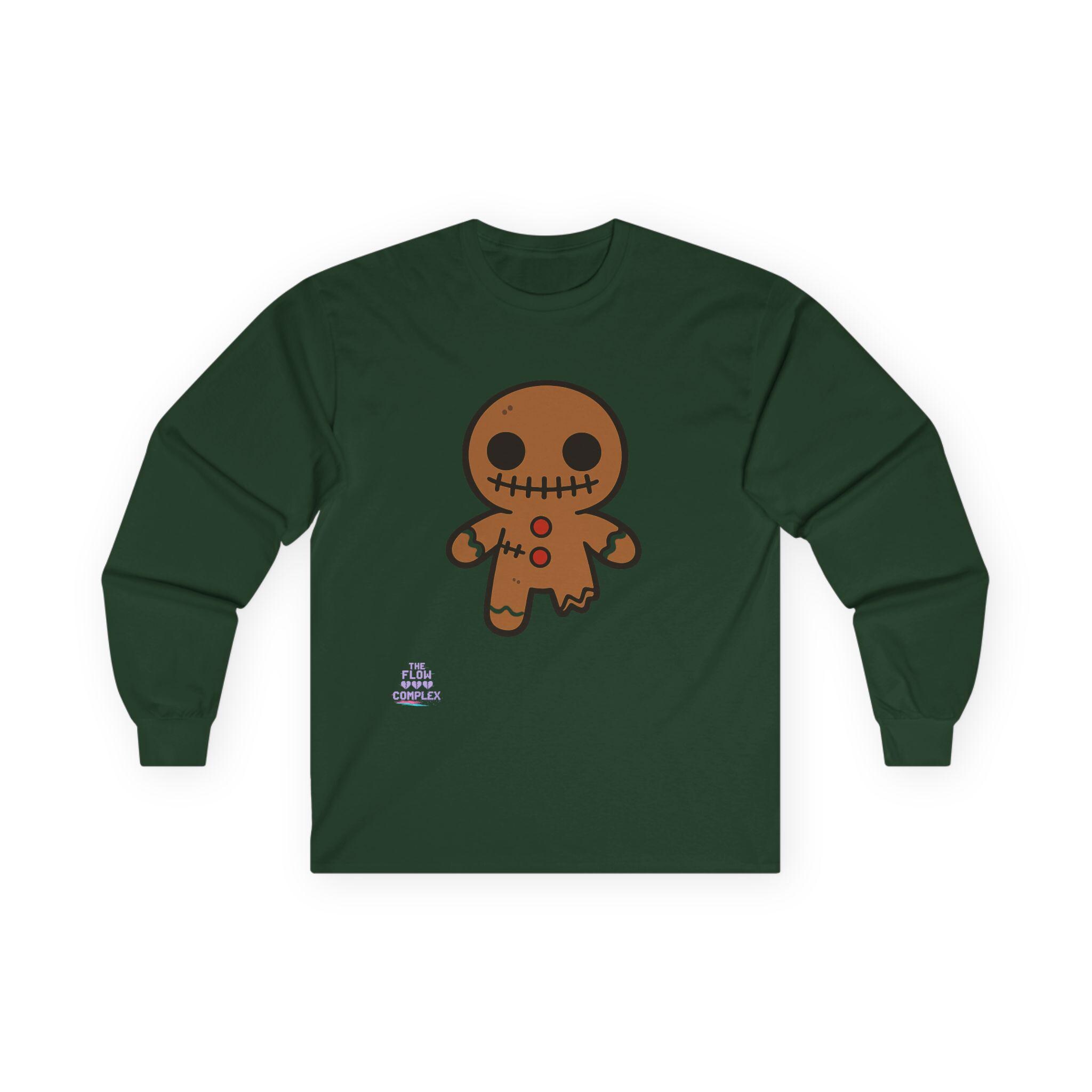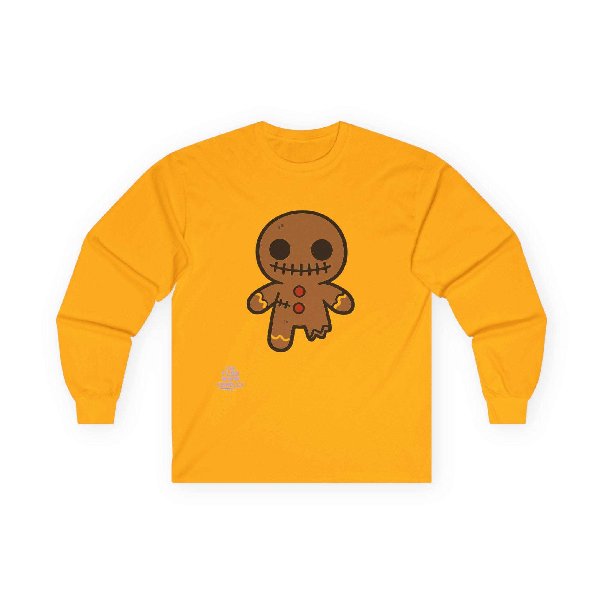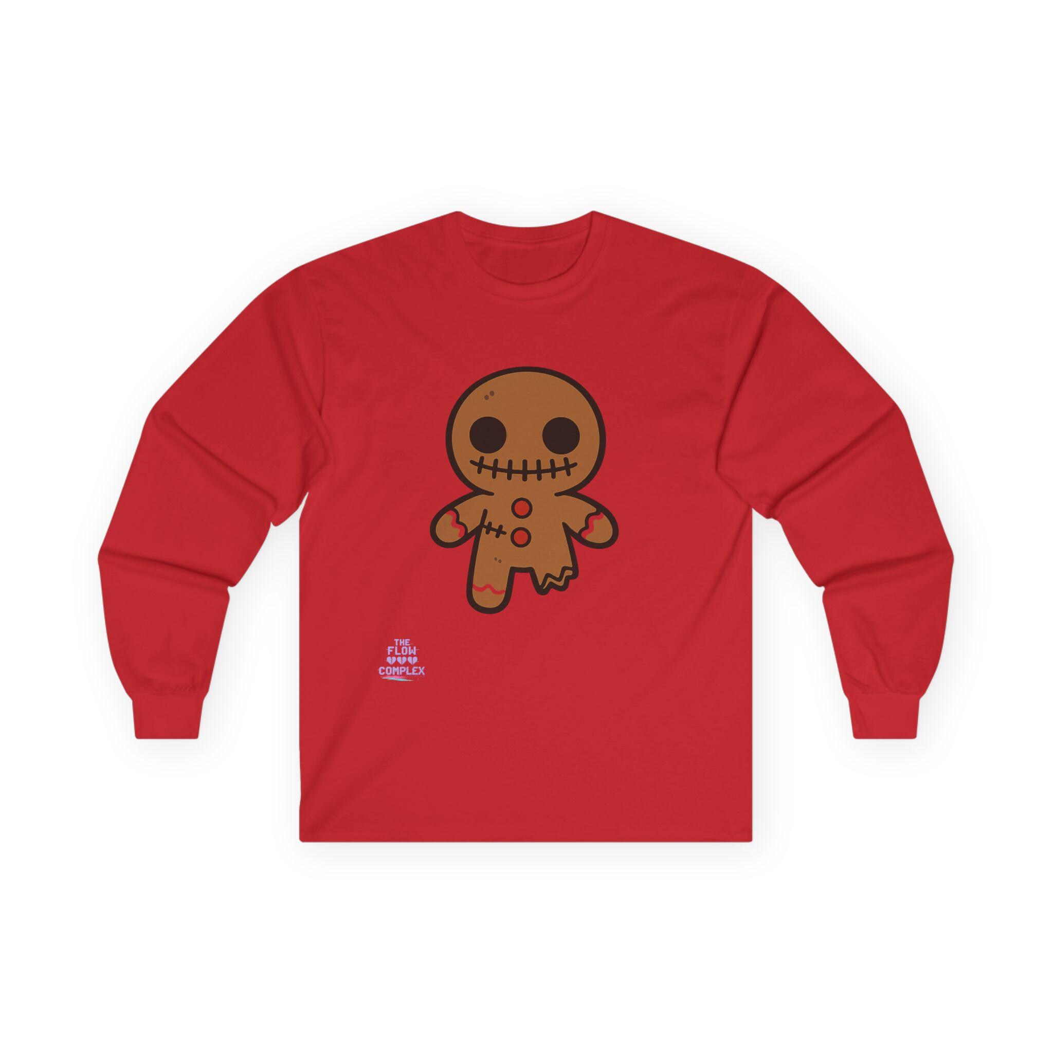 Soft, midweight long sleeve with a wink of spooky sweetness. The thicker, vintage-feel cotton holds a warm white canvas that makes the playful gingerbread character pop—stitched eyes, candy buttons, and a slightly ragged edge that feels handcrafted. Wear it on crisp mornings while sipping cider, during casual Halloween movie nights, or for cozy walks through lit neighborhoods. The tubular knit and shoulder tape keep the silhouette clean and comfortable, while the ribbed collar and cuffs hold their shape through repeat wear. It runs a bit small, so size up if you like a relaxed layer.