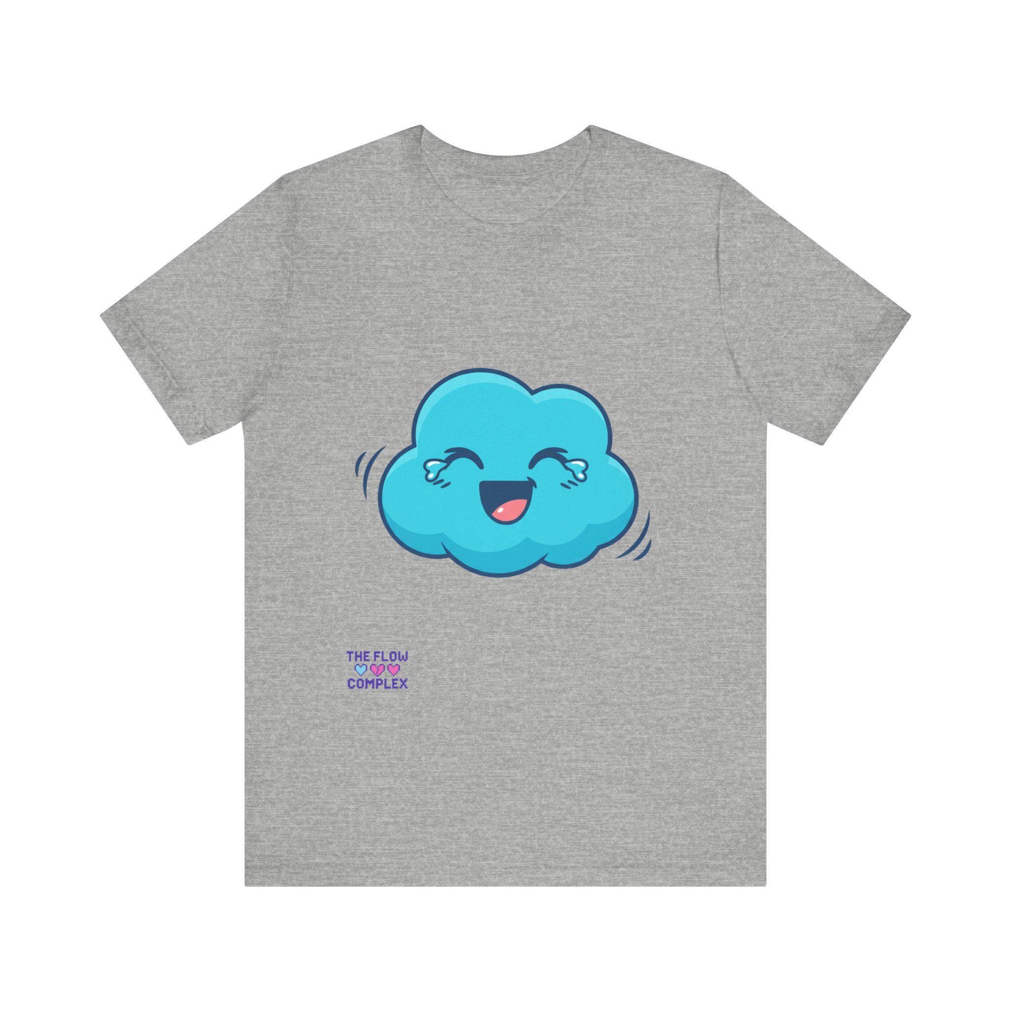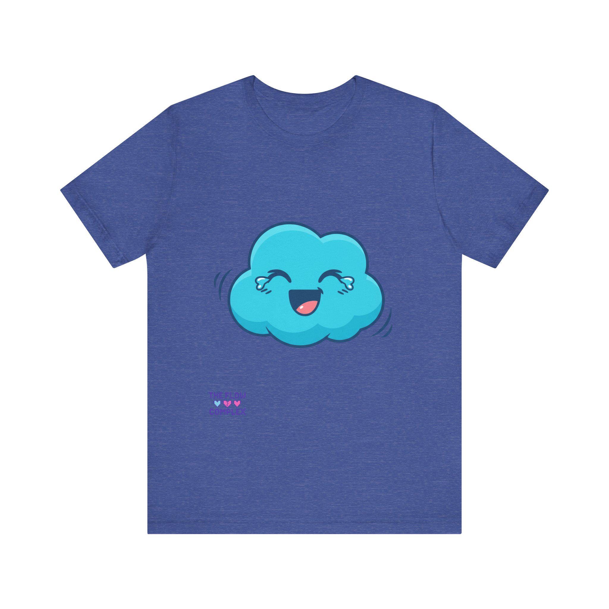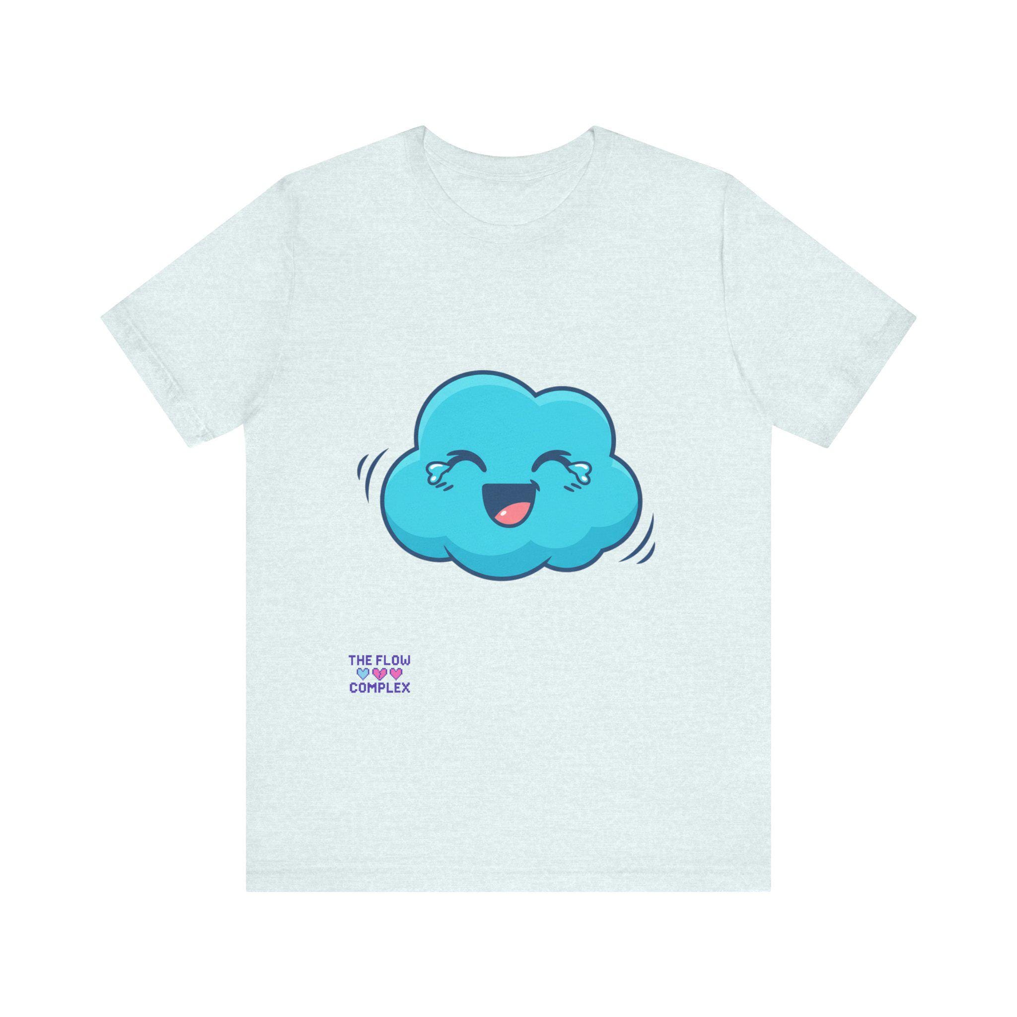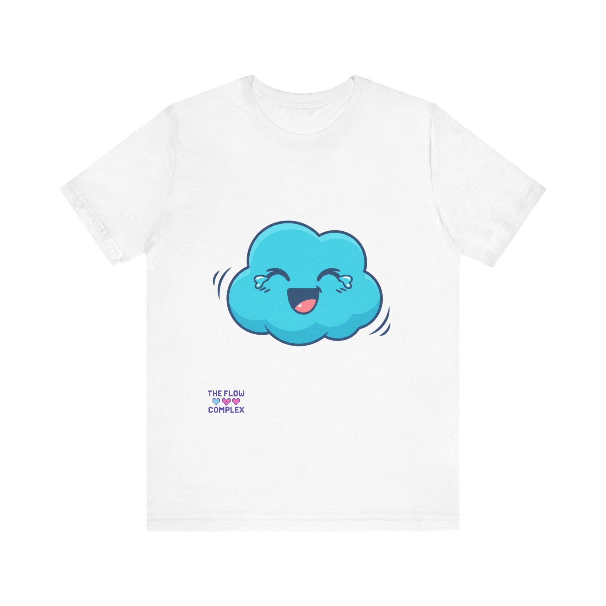 A soft, lightweight tee that brings a playful spark to everyday wear. The front shows a cheerful blue cloud with blushing eyes and a wide smile — an optimistic little character that brightens morning routines, studio sessions, or quiet coffee breaks. The clean white background keeps the illustration fresh and wearable, while the retail fit and crew neckline make layering and accessorizing effortless. Breathable cotton and thoughtful construction mean this shirt moves with you, whether you’re sketching, commuting, or lounging at home. It’s for people who like to wear a small, whimsical reminder to slow down and smile.