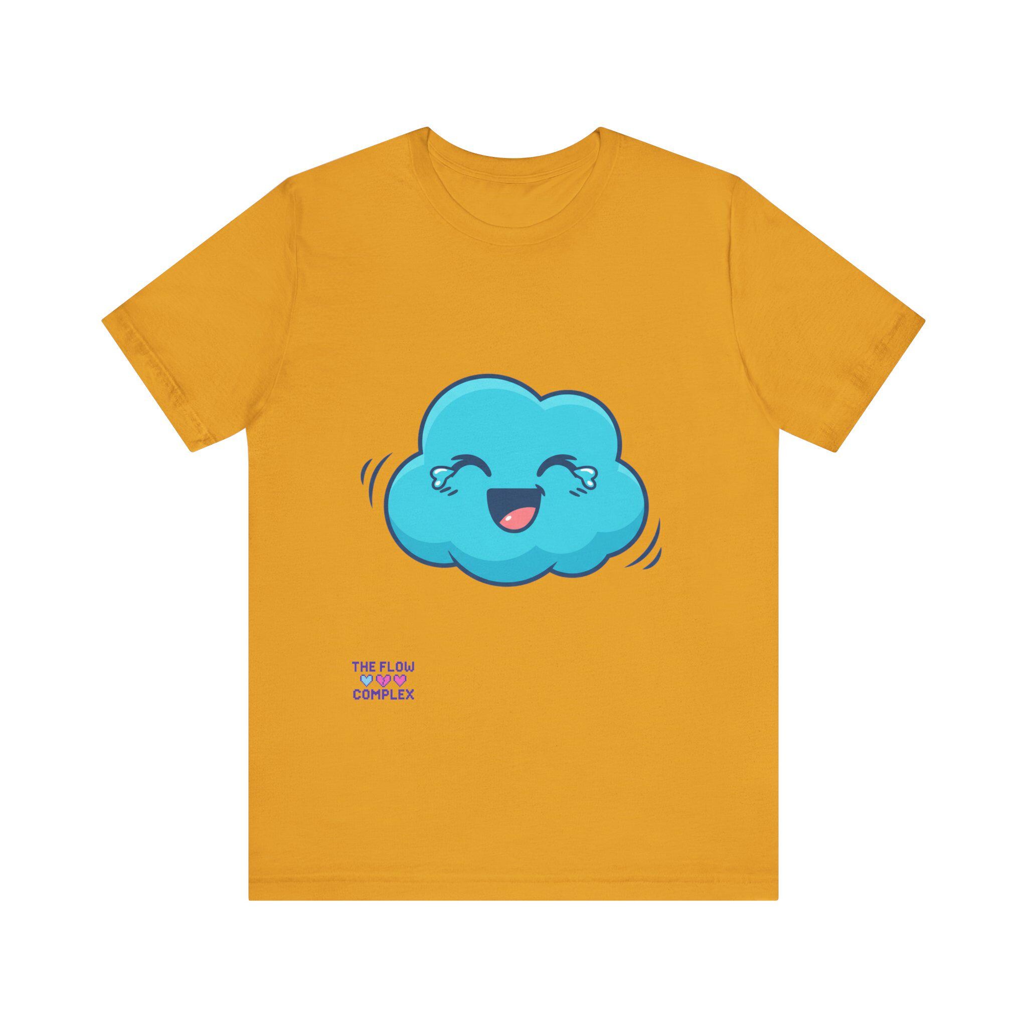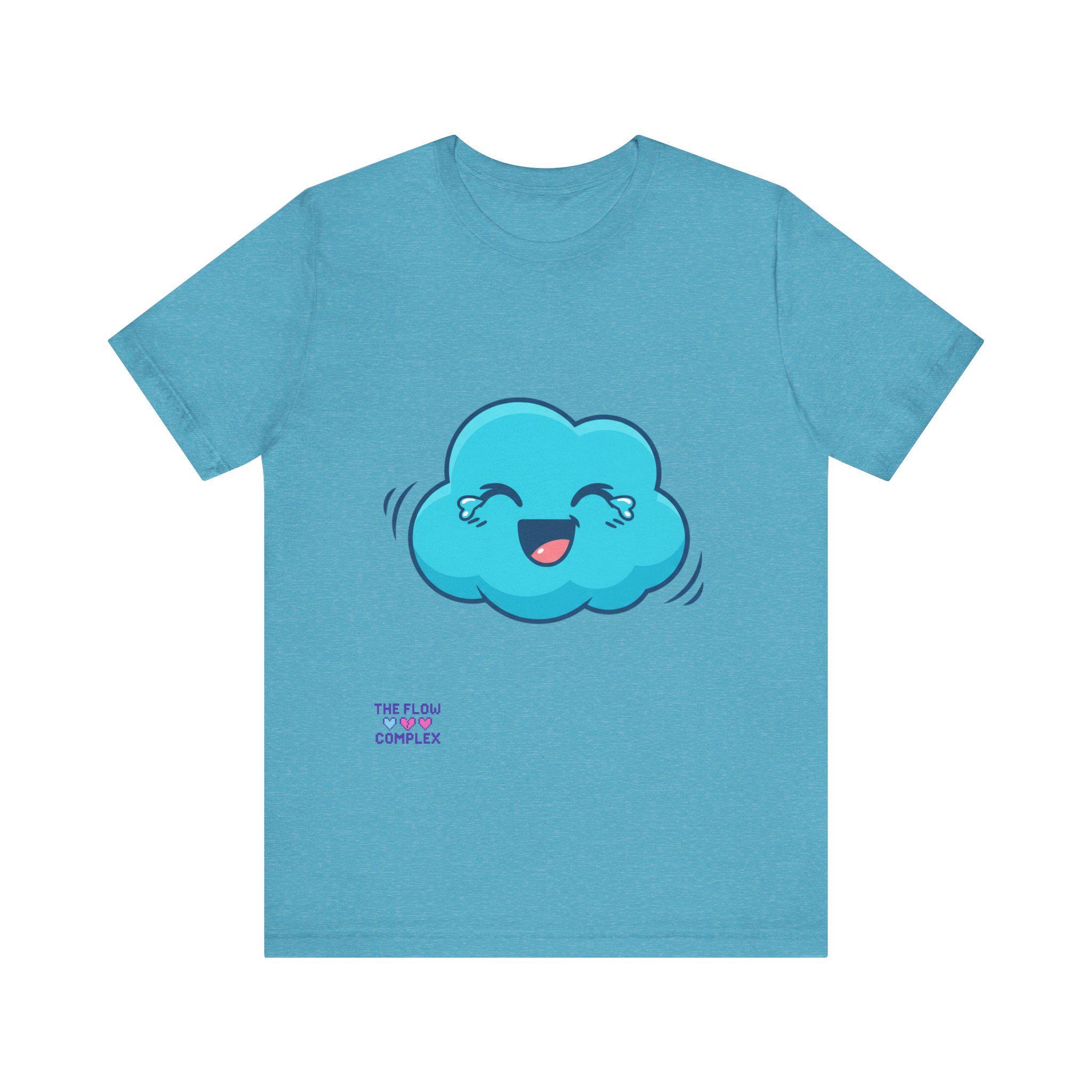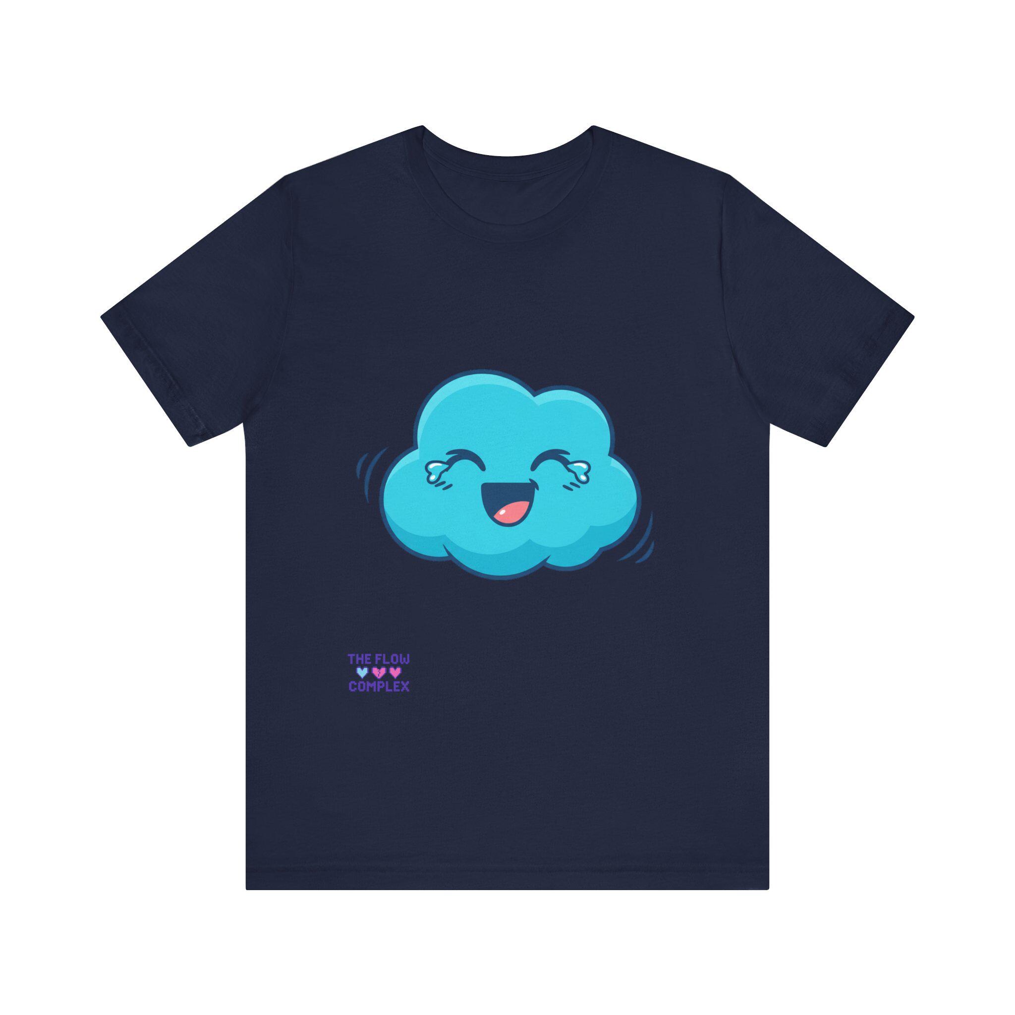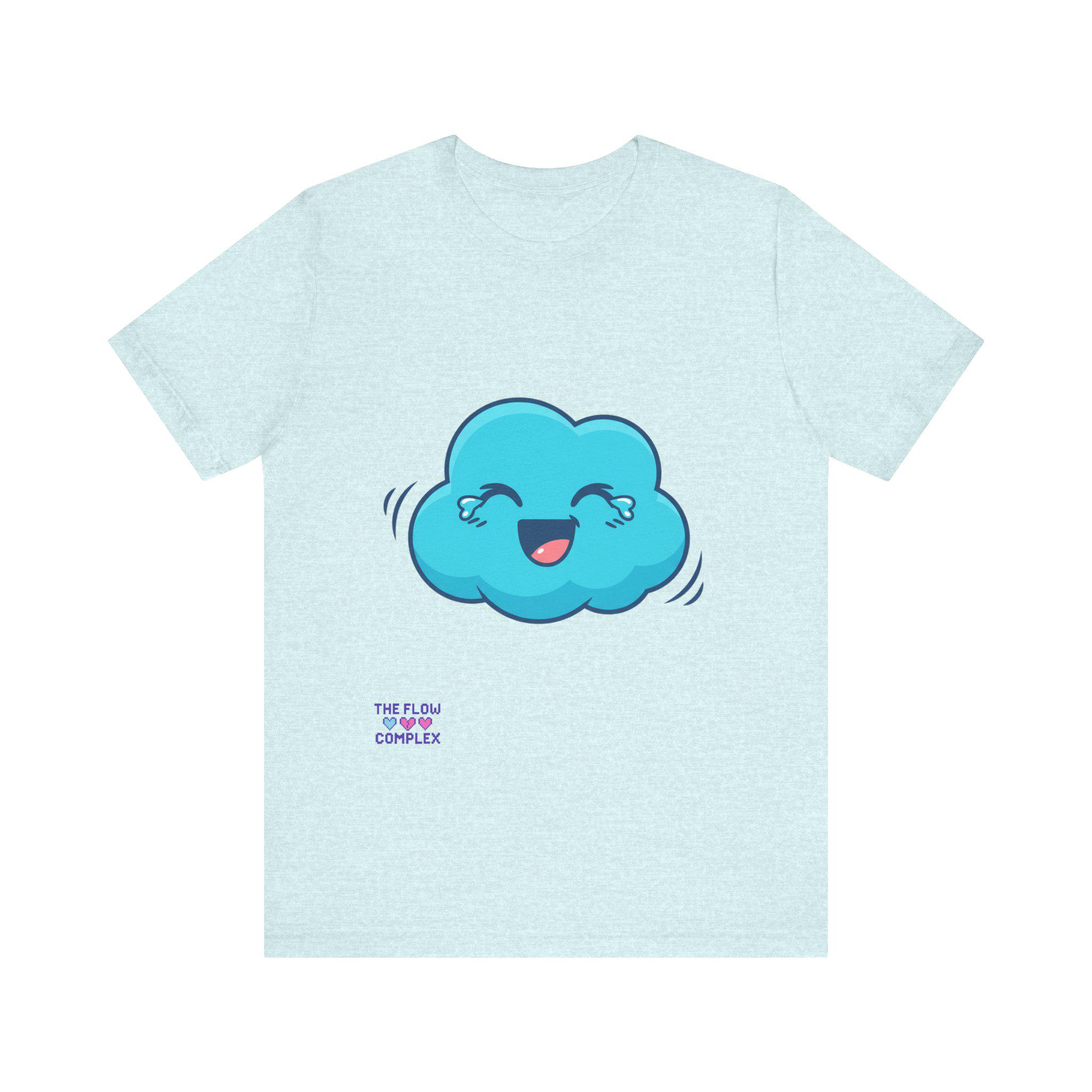 A soft, lightweight tee that brings a playful spark to everyday wear. The front shows a cheerful blue cloud with blushing eyes and a wide smile — an optimistic little character that brightens morning routines, studio sessions, or quiet coffee breaks. The clean white background keeps the illustration fresh and wearable, while the retail fit and crew neckline make layering and accessorizing effortless. Breathable cotton and thoughtful construction mean this shirt moves with you, whether you’re sketching, commuting, or lounging at home. It’s for people who like to wear a small, whimsical reminder to slow down and smile.